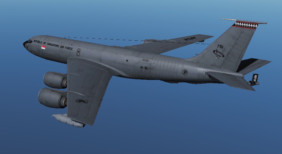Republic of Singapore Air Force (RSAF) Livery for KC-135 w/MPRS, previously operated by 112 SQN. The unit has drawn down the KC-135R fleet and currently operates the Airbus A330 MRTT.