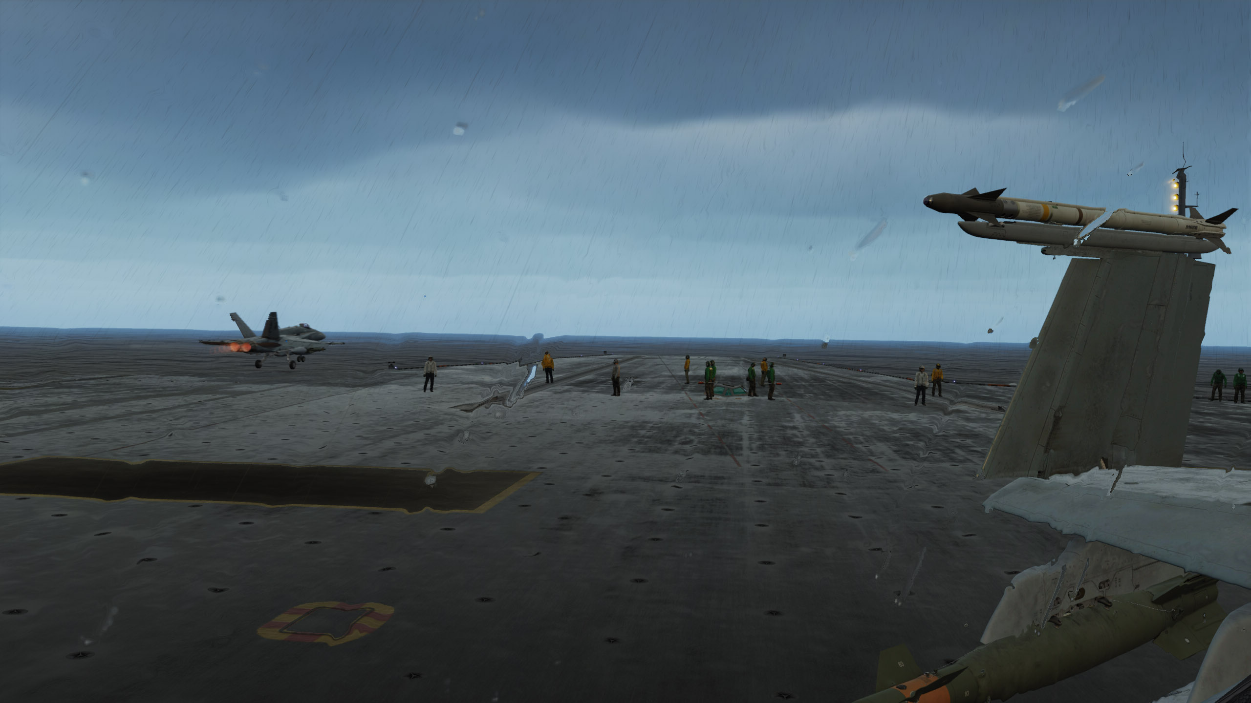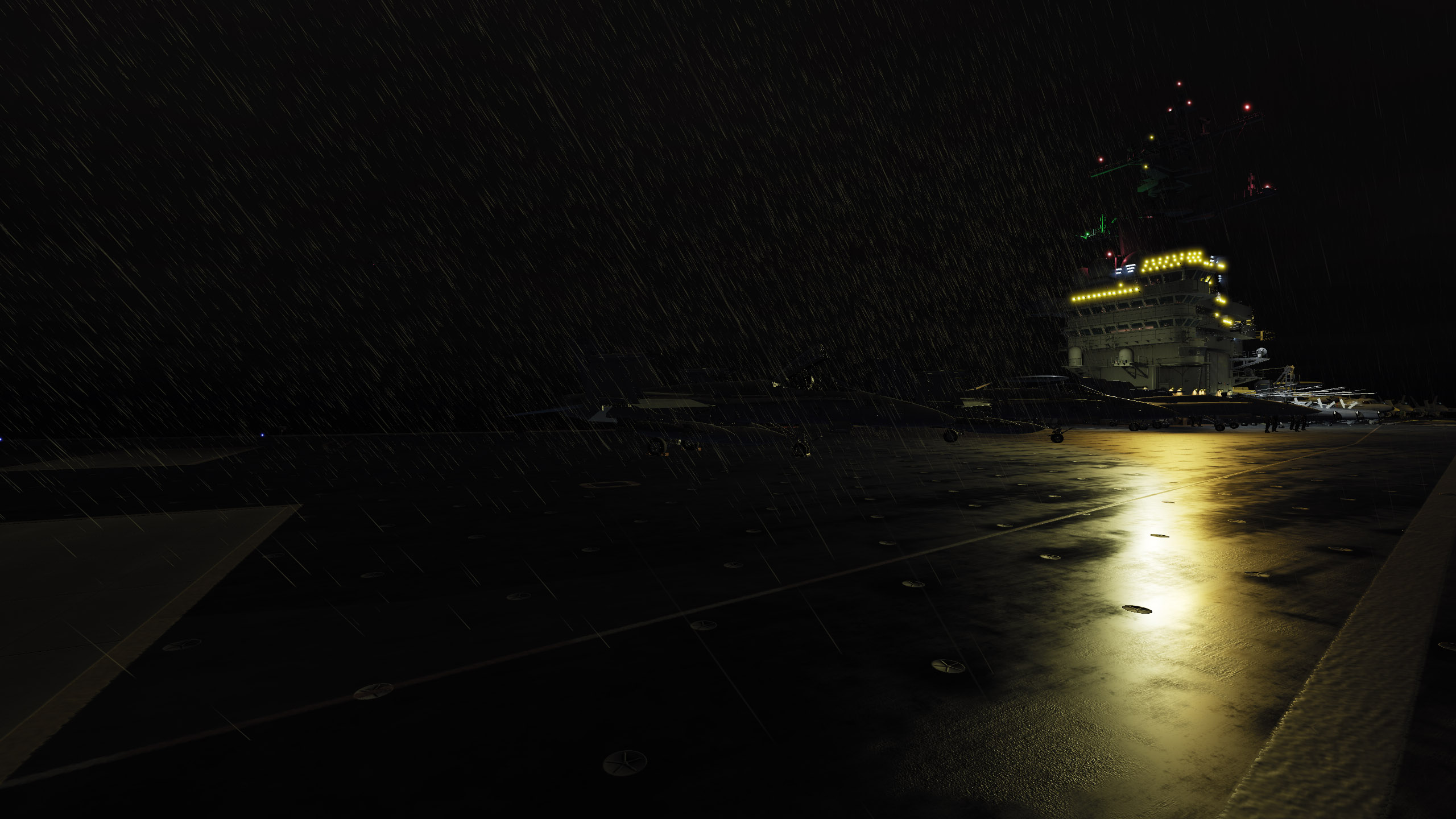 Alternative (2048x2048) wet deck map for the Supercarrier. This is a first version. Will probably be updated once SSLR reflections are enabled for the SC. It includes water dispaced by the wind from the padeyes and other features to resemble the complexity of a large structure under heavy wind and rain.<br />