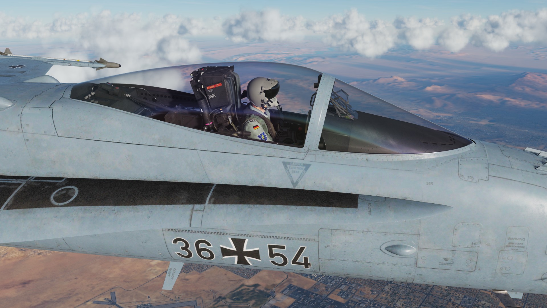 This Hornet skin is fictional and based on Eurofighter Typhoon camouflage scheme and markings of Tactical Air Force Wing 73 Steinhoff (Taktisches Luftwaffengeschwader TaktLwG 73).