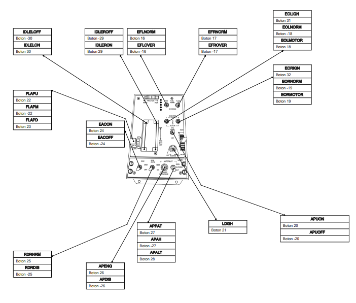 Este profile sirve para usar todas las combinaciones del HOTAS THROTTLE sin necesidad de linkear combinaciones de teclado en la aplicación TARGET y poder configurar todos las posiciones en OFF del dispositivo en el propio ajuste de DCS (o cualquier otro juego). Cuando bajas las palancas abajo (se pone en OFF), añade LCTRL + el botón que le correspondería a la palanca. De esta forma en DCS puedes configurar en ajustes de control, tanto cuando subes la palanca como cuando lo bajas.