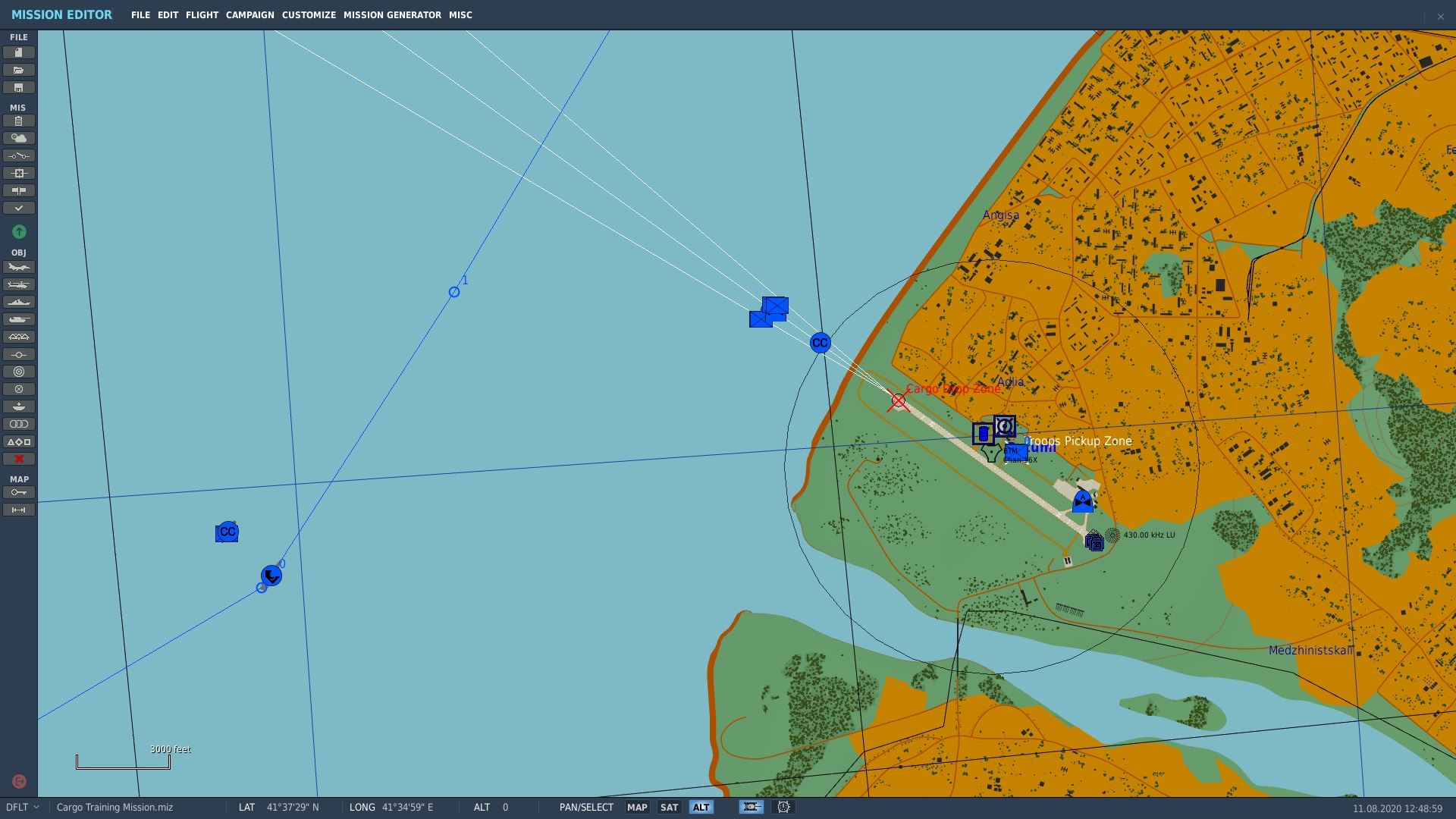 The objective of the mission is to take the cargos that are on the eastern side of the runway at Batumi and transporting them to the western side.