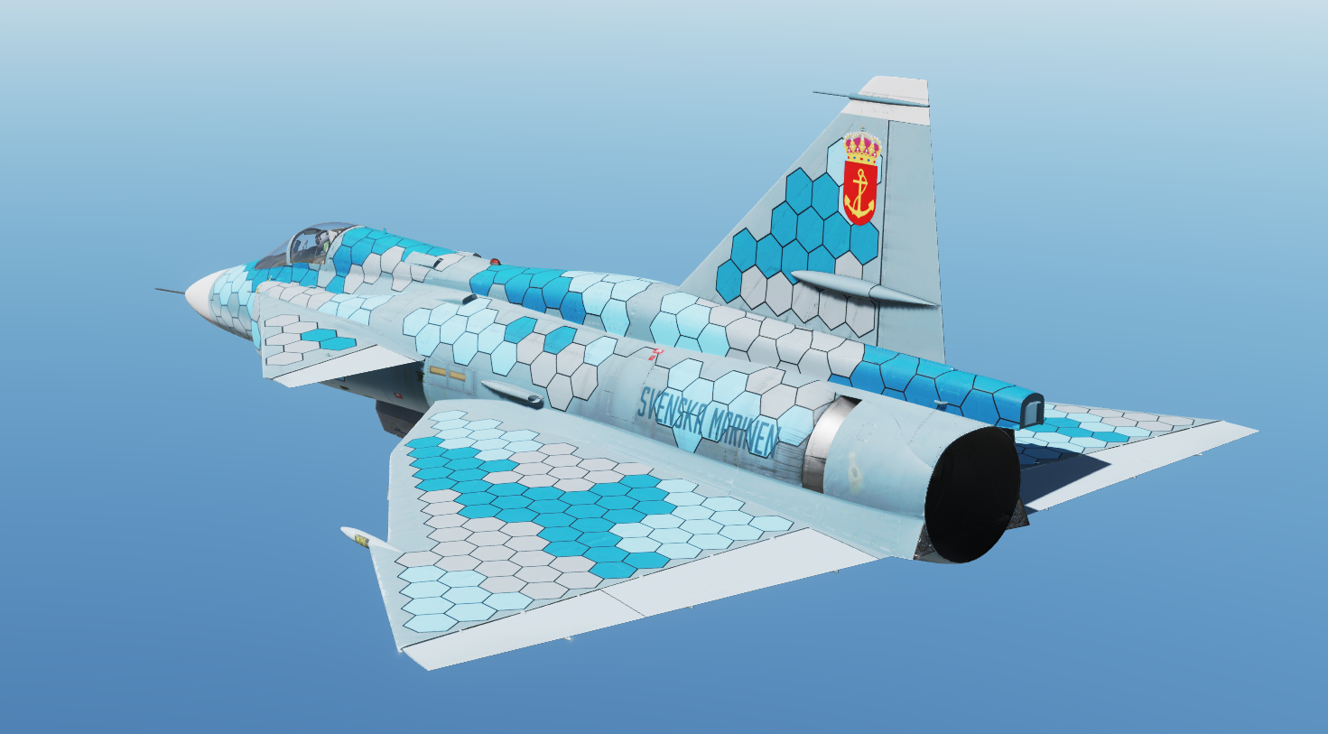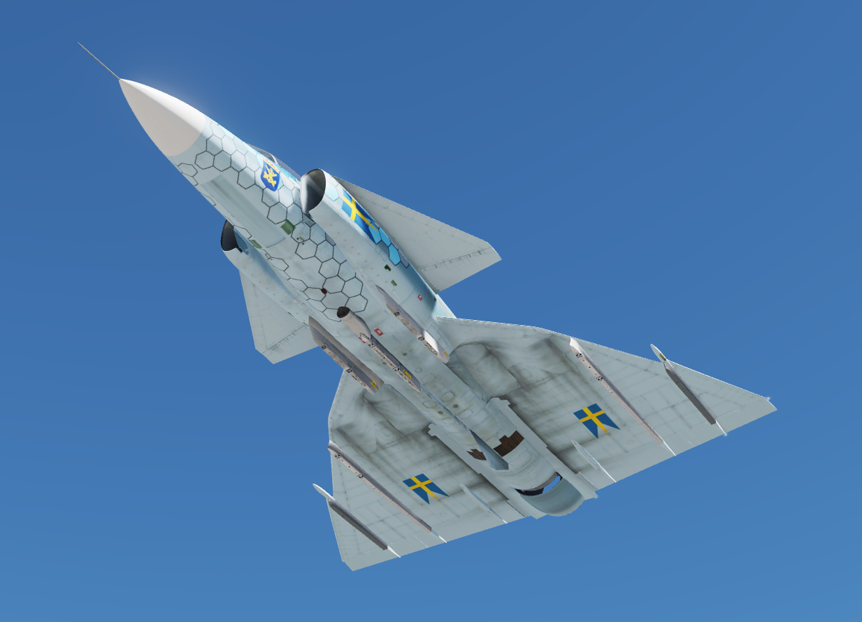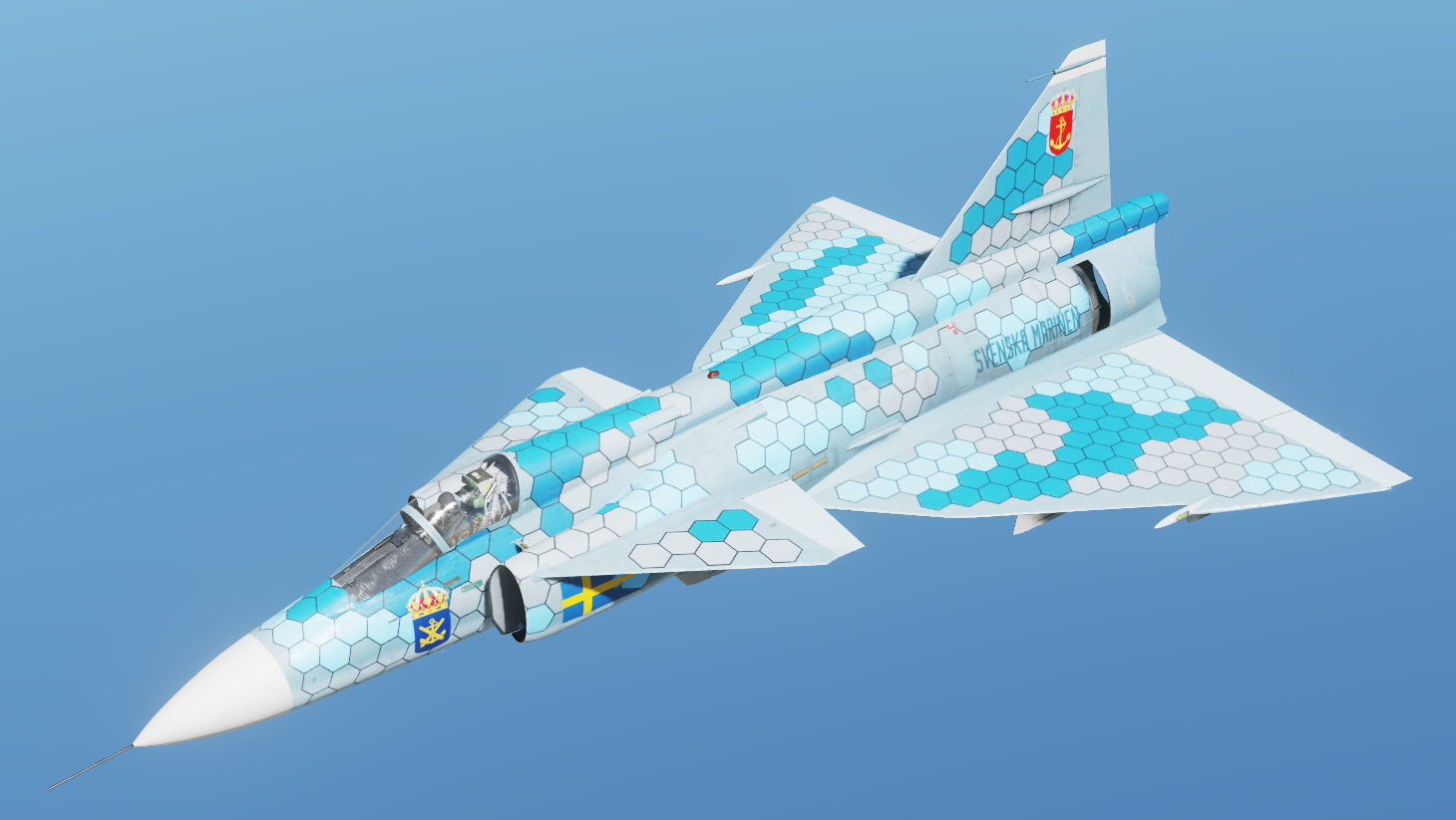 A fictional Swedish Navy Viggen livery with a hexagonal pattern.
