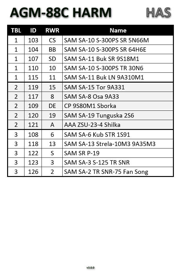v3.0.0 (29.12.2021): added threat tables for the HARM HAD page; removed the paper background kneeboard version and added a night version with white font on black background instead
