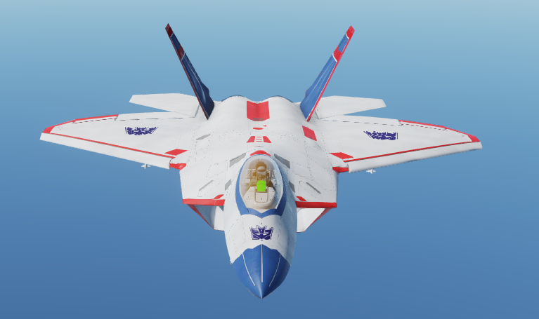 Since Starscream has taken on the disguise of an F-22 Raptor in recent films, I took the liberty of making a retro throwback on a modern airframe.