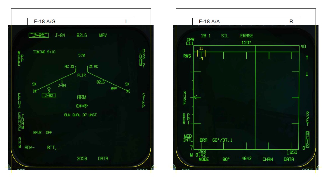 Printsreens of the MFDs resized to fit the “Thrustmaster Cougar MFD”