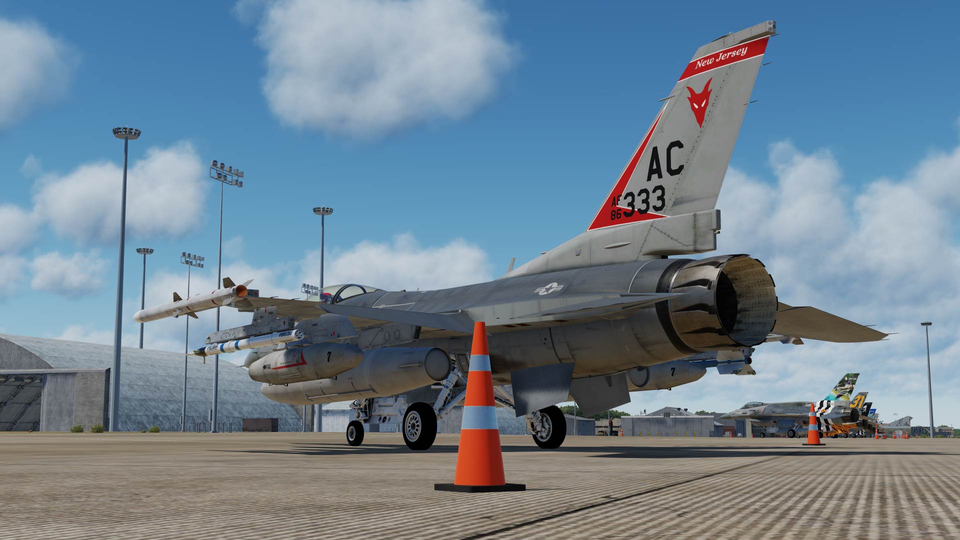 This jet is a complete rework of the stock F-16 to resemble as much as possible a NJ ANG viper, with the stunning Devil tail.