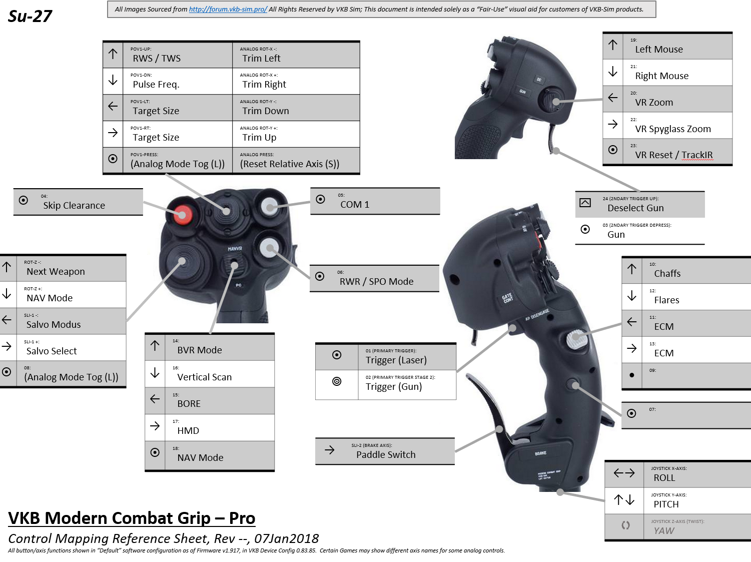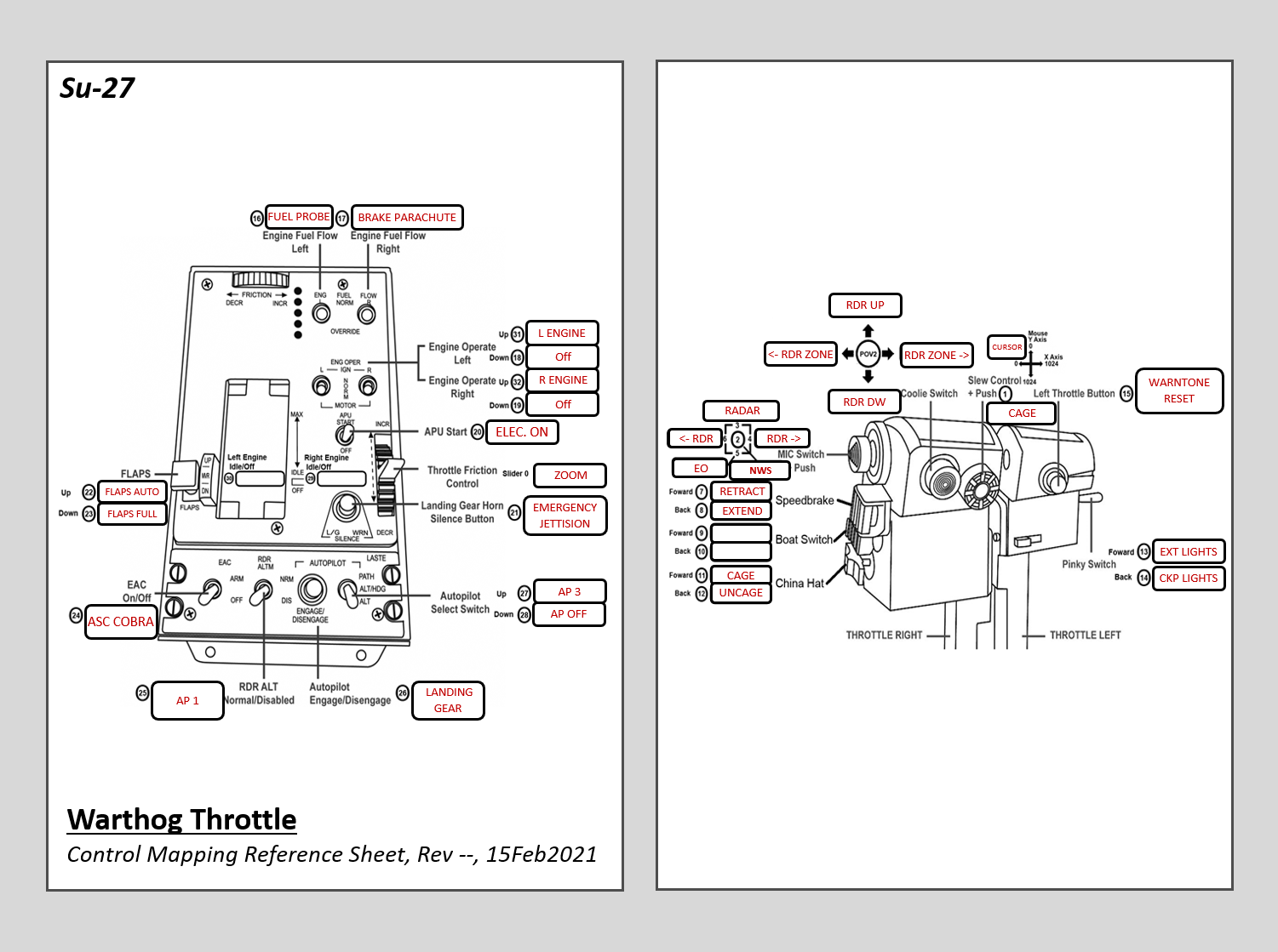 Control Profile VKB Modern Combat Grip Pro (MCG Pro) & Warthog Throttle for Su-27, J-11A, Su-33, MiG-29