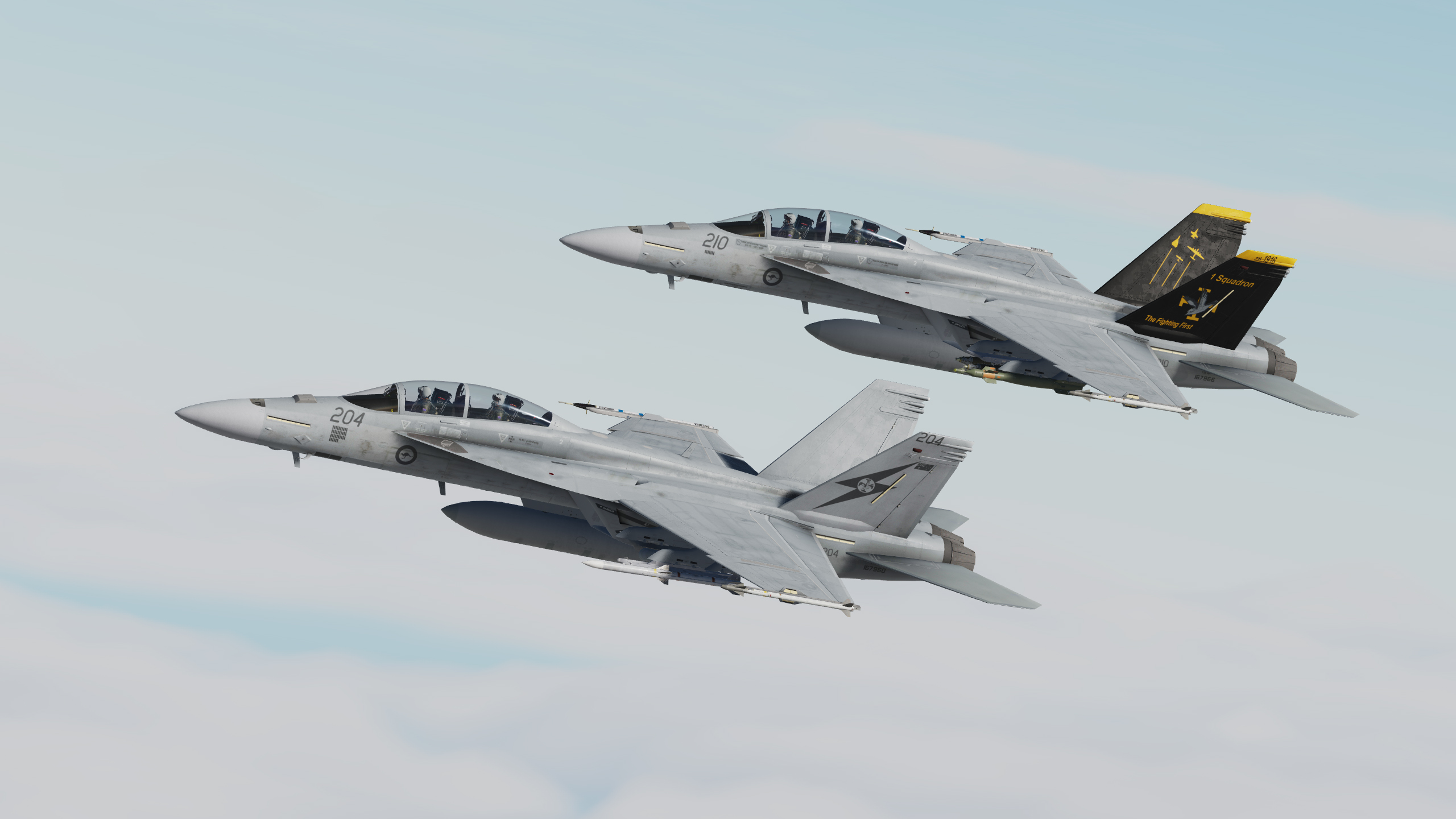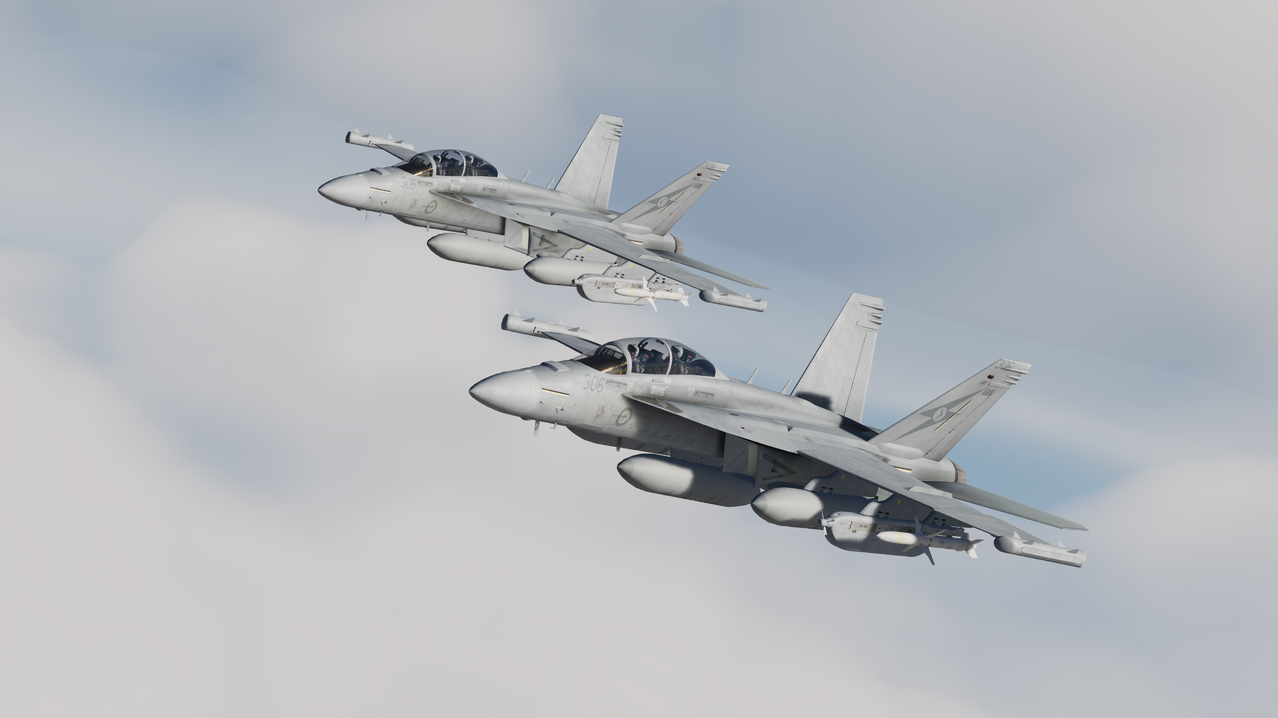 RAAF No. 1 Squadron F/A-18F, No. 6 Squadron EA-18G and VAQ-129 Viking Trainer liveries for the FA-18EFG Superbug Mod by Chiller Juice Studios.