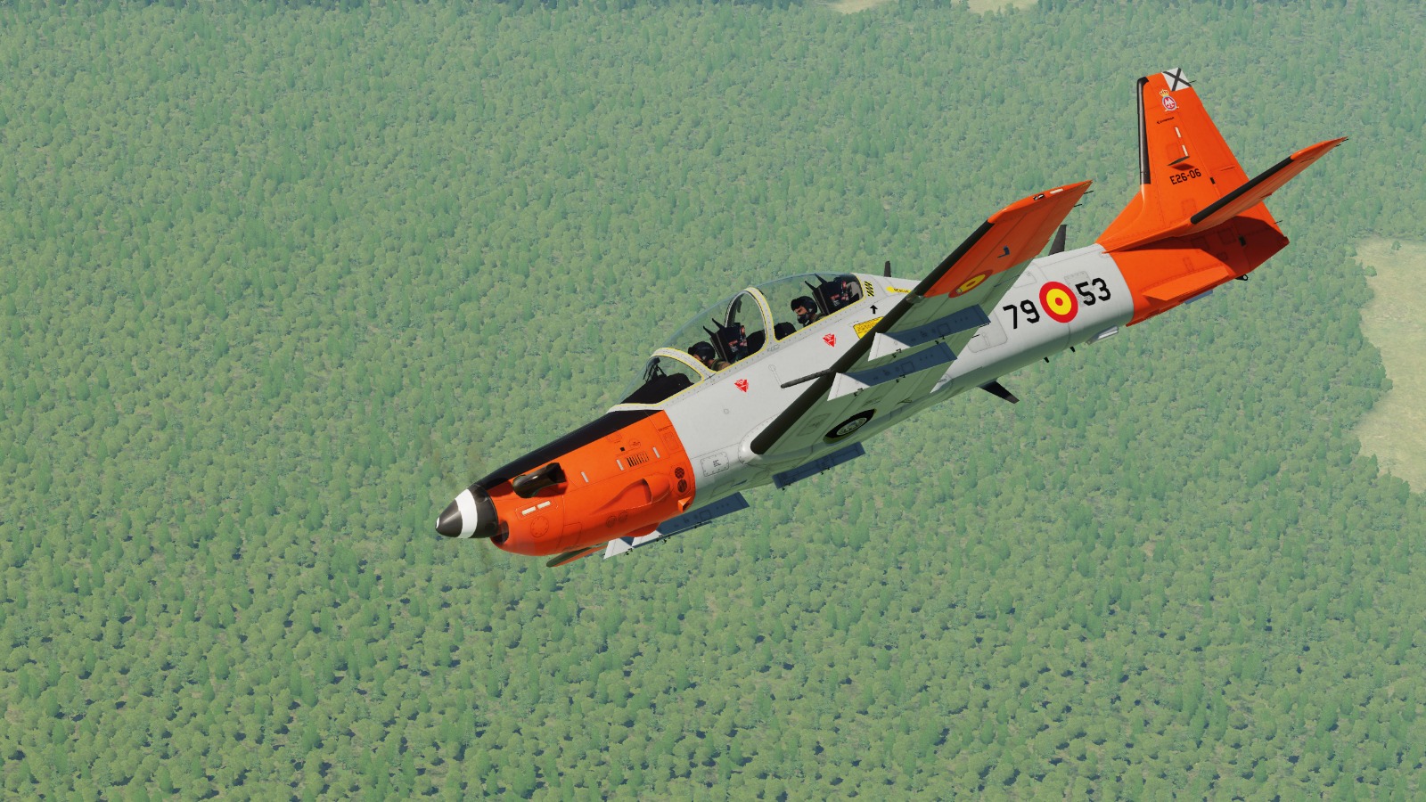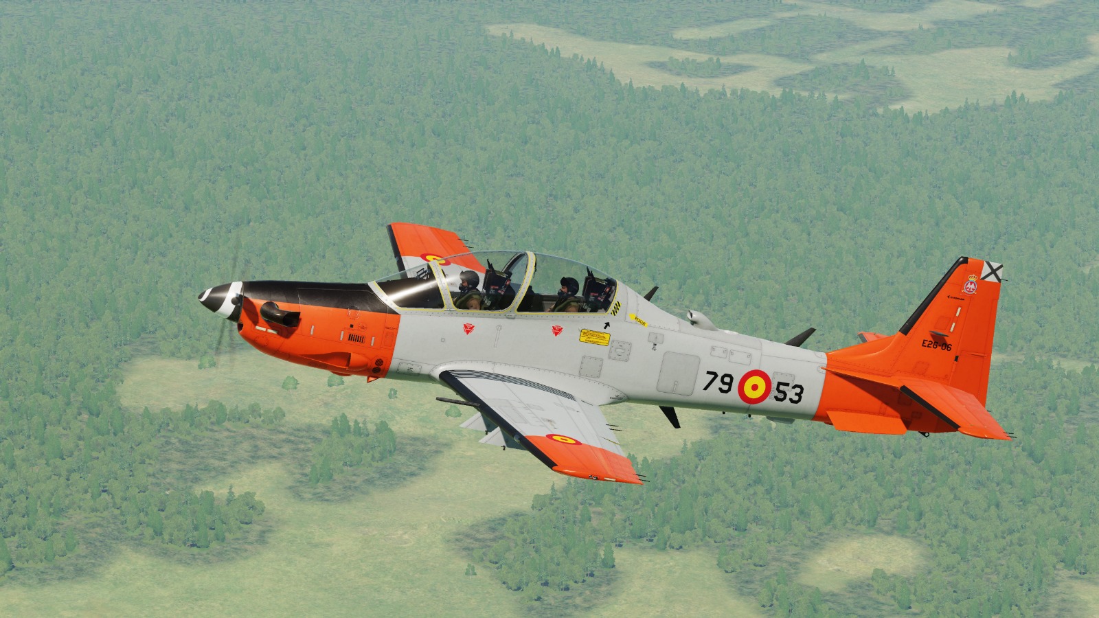 In this skinpack are incluided six different numbers, you can emulate the Spanish Air Force trainer -Enaer T-35C Pillán- (E.26) using the community mod A-29B Super tucano. You can find this same Skinpack in the AGAV (Ejercito del Aire Virtual) mission created by Ala12Rv-Skyfire available in the forums.