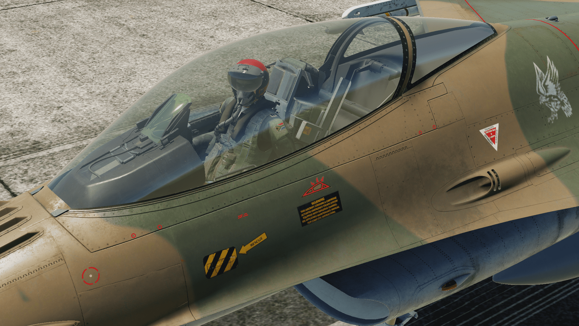 This is a fictional F-16 skin based on the 1 squadron Mirage F1 livery.
