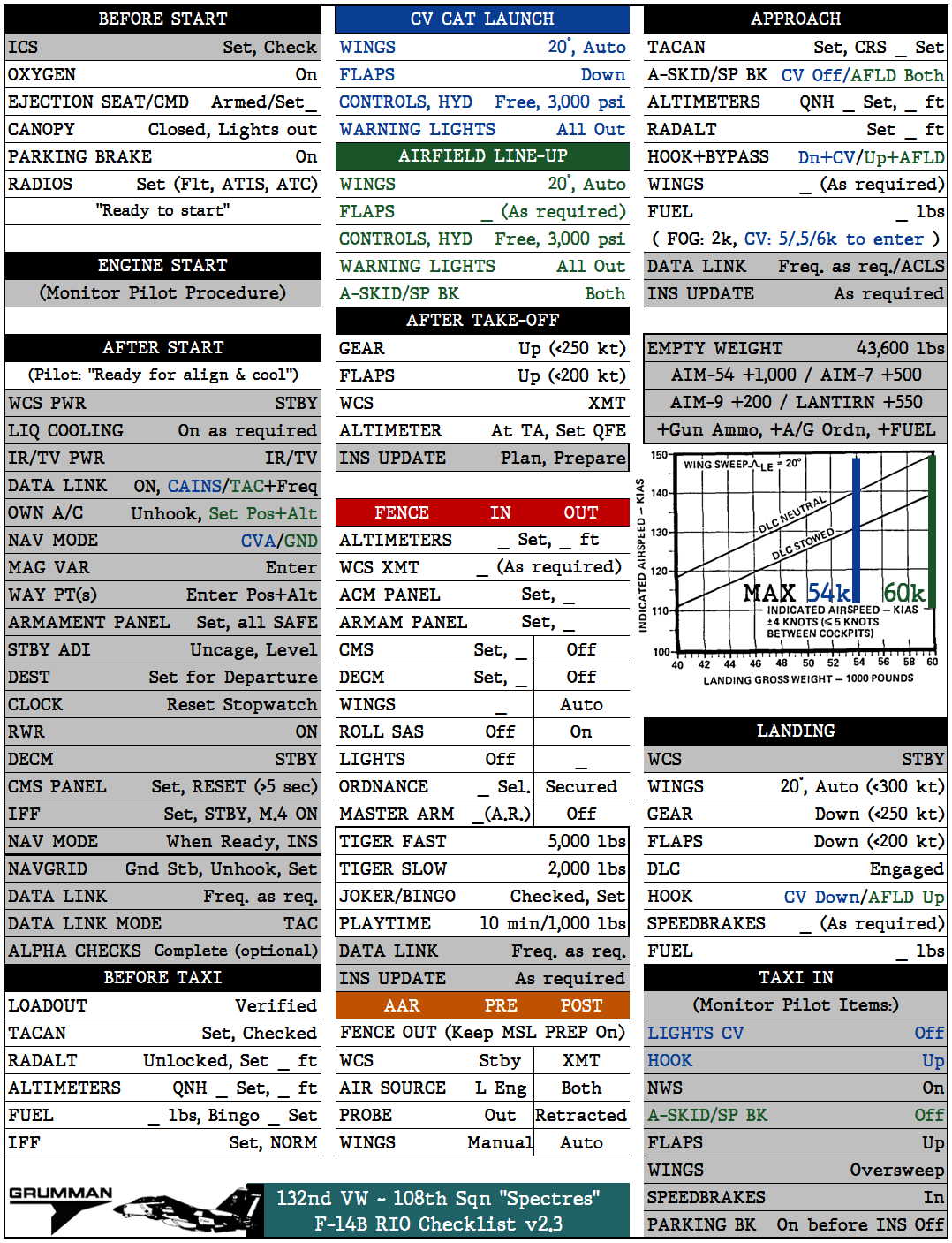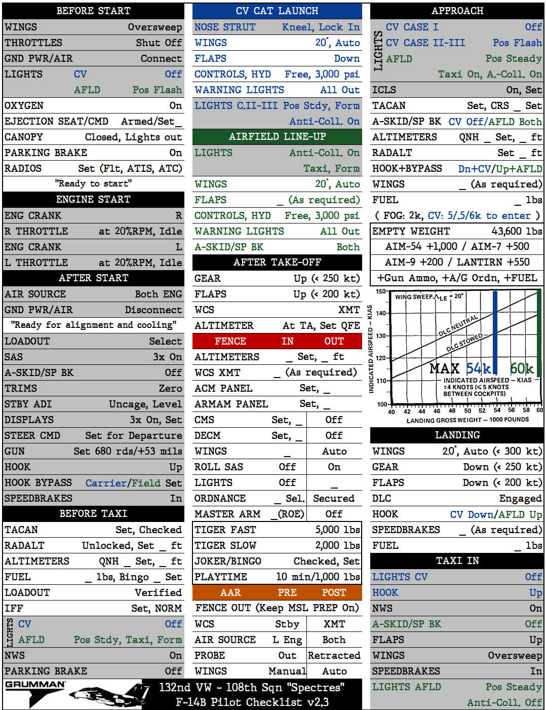 This is a compact checklist which has been optimized for sim work. Highlights: