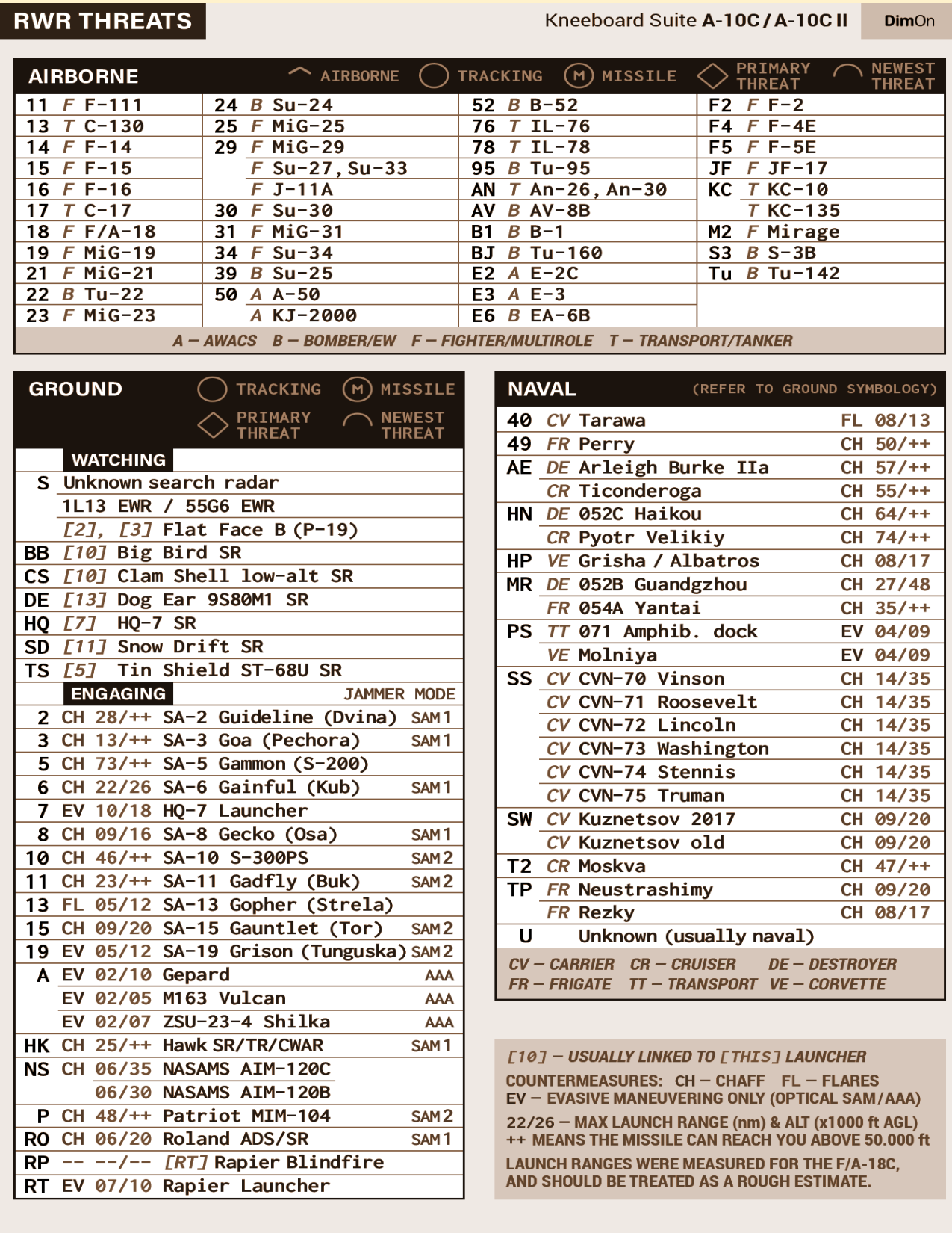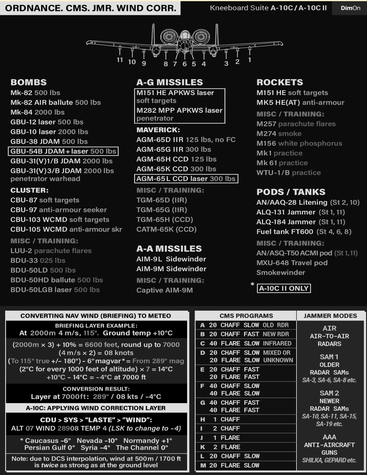 Huge thanks to Dmitriy Kozyrev, for his original A-10C Kneeboard pack. The last three pages from this checklist can be found at this link https://www.digitalcombatsimulator.com/en/files/3313817/