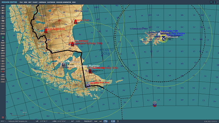 An accurate template of all air defense sites in the South Atlantic map by Razbam, Perfect for mission creators looking to make a scenario in a realistic depiction of the region.