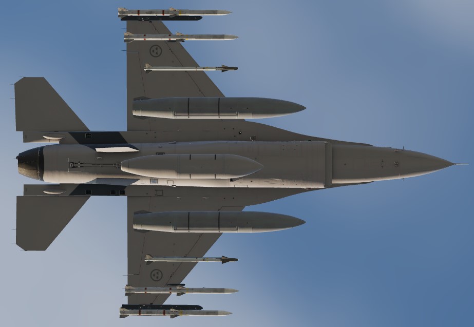 The base pattern used is the #6002 skin by @ikonane also available here. I then made some color corrections and alterations, including changes to the pattern most notably the vertical stabilizer, added airbase (Flygflottilj) markings and set up the description files to support all included textures within the folder structure. Since the Swedish Air Force does not operate any F-16s (duh) this skin is entirely fictional. Made for those of us who wants to fly this excellent jet in Swedish Air Force markings and in orderly fashion, the set of liveries allows for the creation of entire flights from various airbases.
