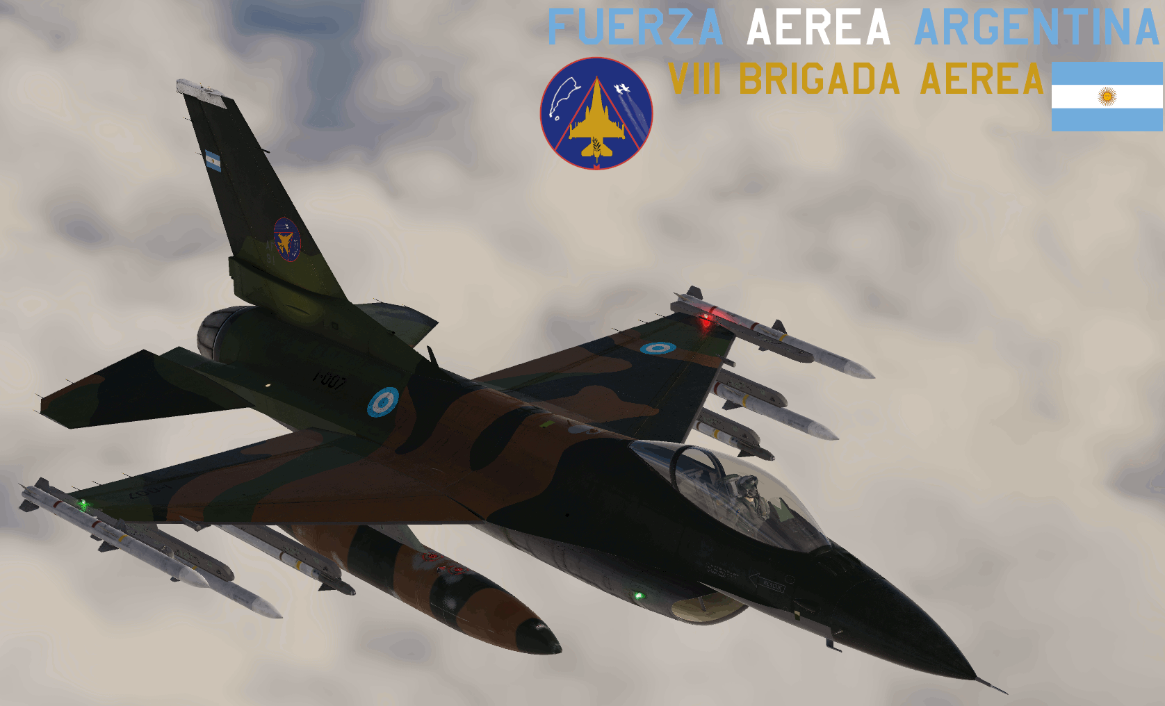 F-16C Painted on the colors of the Argentine Air Force colors, specifically on the VIII- Grupo de Caza, Mirage IIIEA Squadron, took me a sweet time to make, so please enjoy