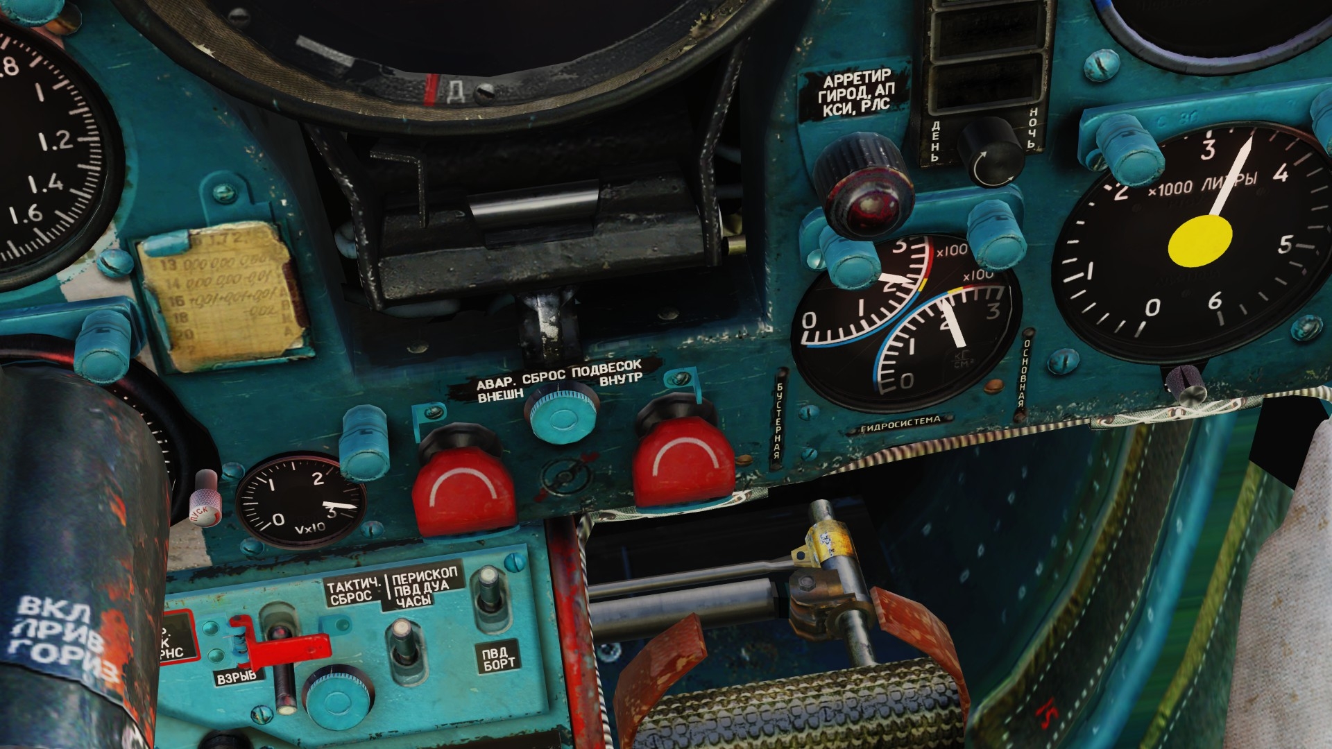 - Maybe, possibly, *very tentatively* different cockpit colours. Do not ask for grey or black, this is a holy place and I will not defile it. Options may include the more typical (and classic) Soviet turquoise as well as the darker teal of the Yugoslav L-17s. Technically this mod mostly works with cockpit recolours as it is - however to correct both the wing tank jettison guard's mirrored text and the periscope's incorrect label, I had to edit two of the base cockpit textures and these will show as the default Bulgarian blue. You can chop and change these yourself if you really want to use this with another colour cockpit, go wild. Just know I will judge you if that cockpit is any shade of grey or black.