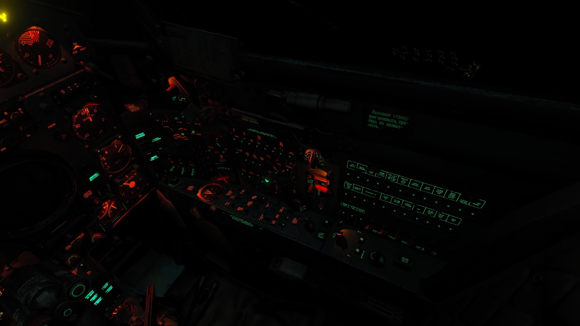 The longer I looked at the cockpit, the more something was bugging me. The font didn't quite look right. Turns out it wasn't. Then I started noticing typos, so I hunted down references from various MiG-21 cockpits to try correct them. Then I saw the wing tank jettison safety guard was mirrored, so I fixed it. Then I noticed some systems were referred to by incorrect abbreviations, or were referencing systems from other variants, so I started adjusting those, too. Then I realised the instruments would need adjustment, and also I figured the backlighting could use a little more bleed, soooo...