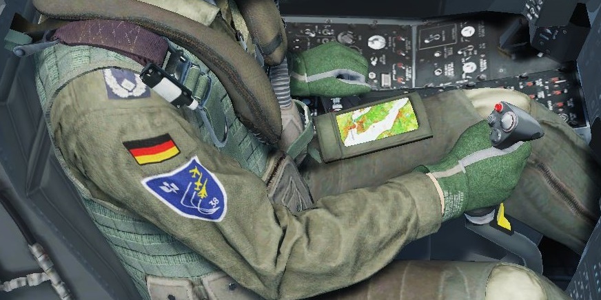 Customized pilot skin with Lake Constance (southern Germany) kneeboard map.
