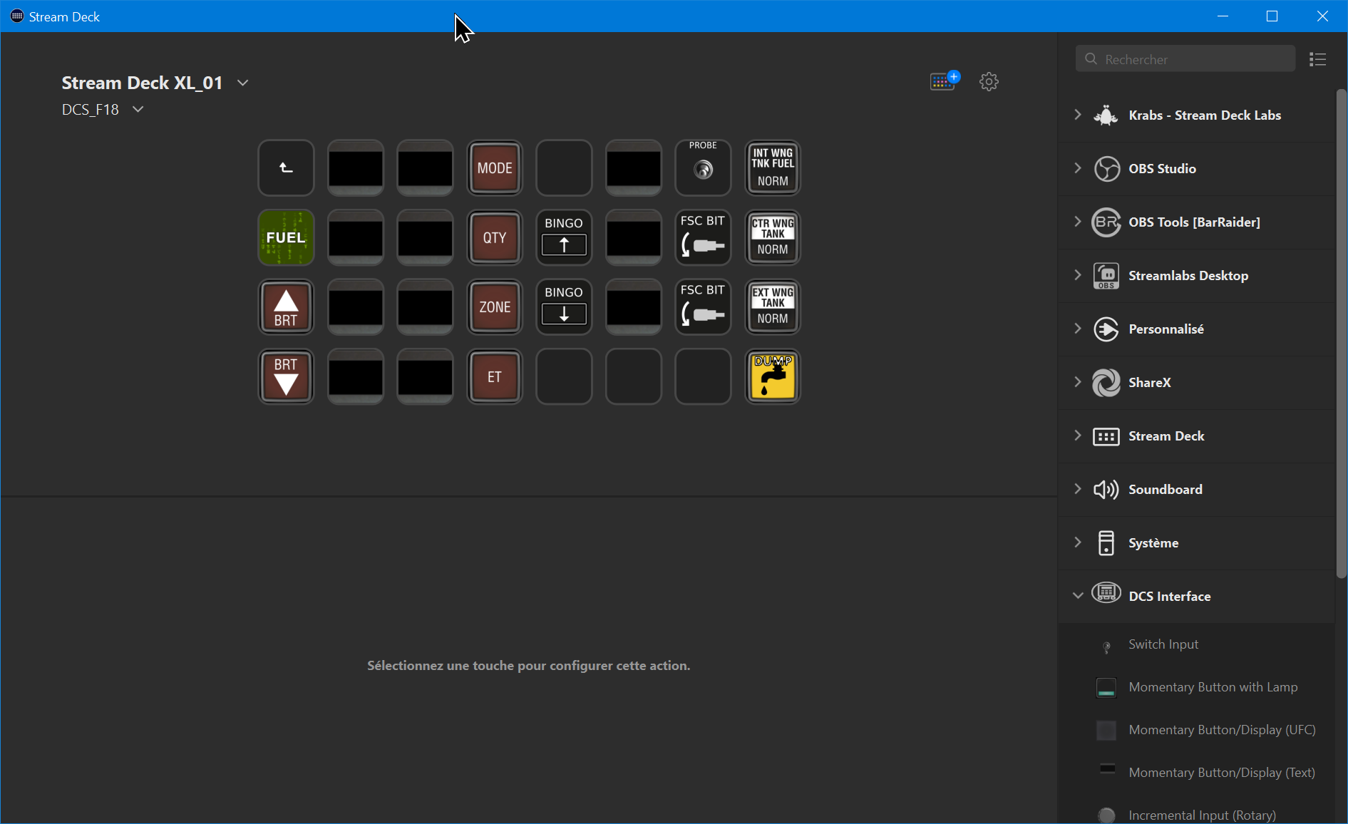 Un profil pour F/A-18C Hornet à utiliser avec l'interface DCS et un Streamdeck 32 touches.