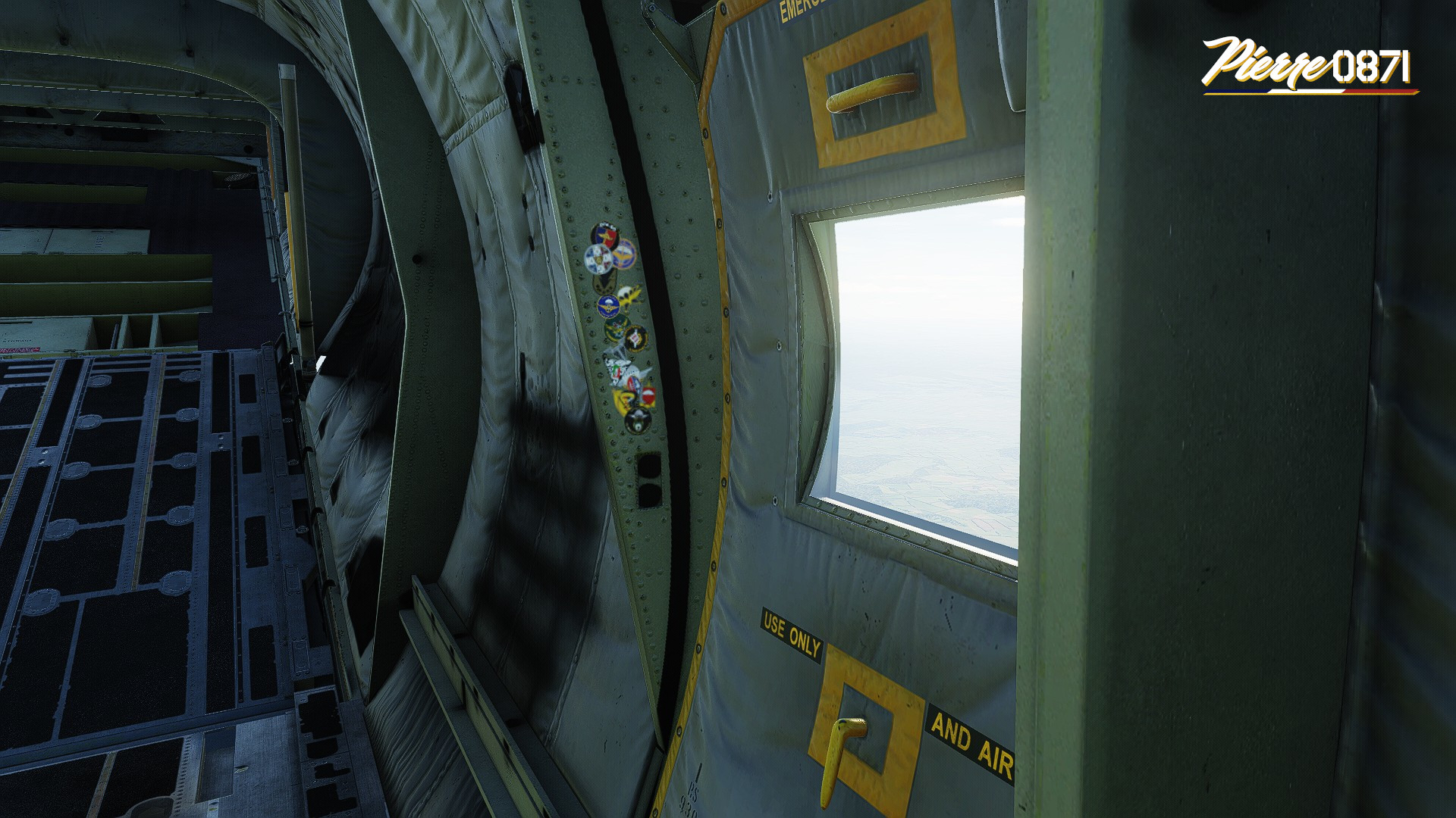 l'une des "traditions" des différentes unités lors des séances largage OA consiste à marquer l'avion de son passage en collant l'écusson de l'unité à la mise "en position" du premier homme de chaque câble à la porte avec le "GO"
