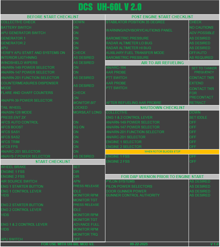 Quick reference guide for UH-60L free mod version 2.0 - September 2025