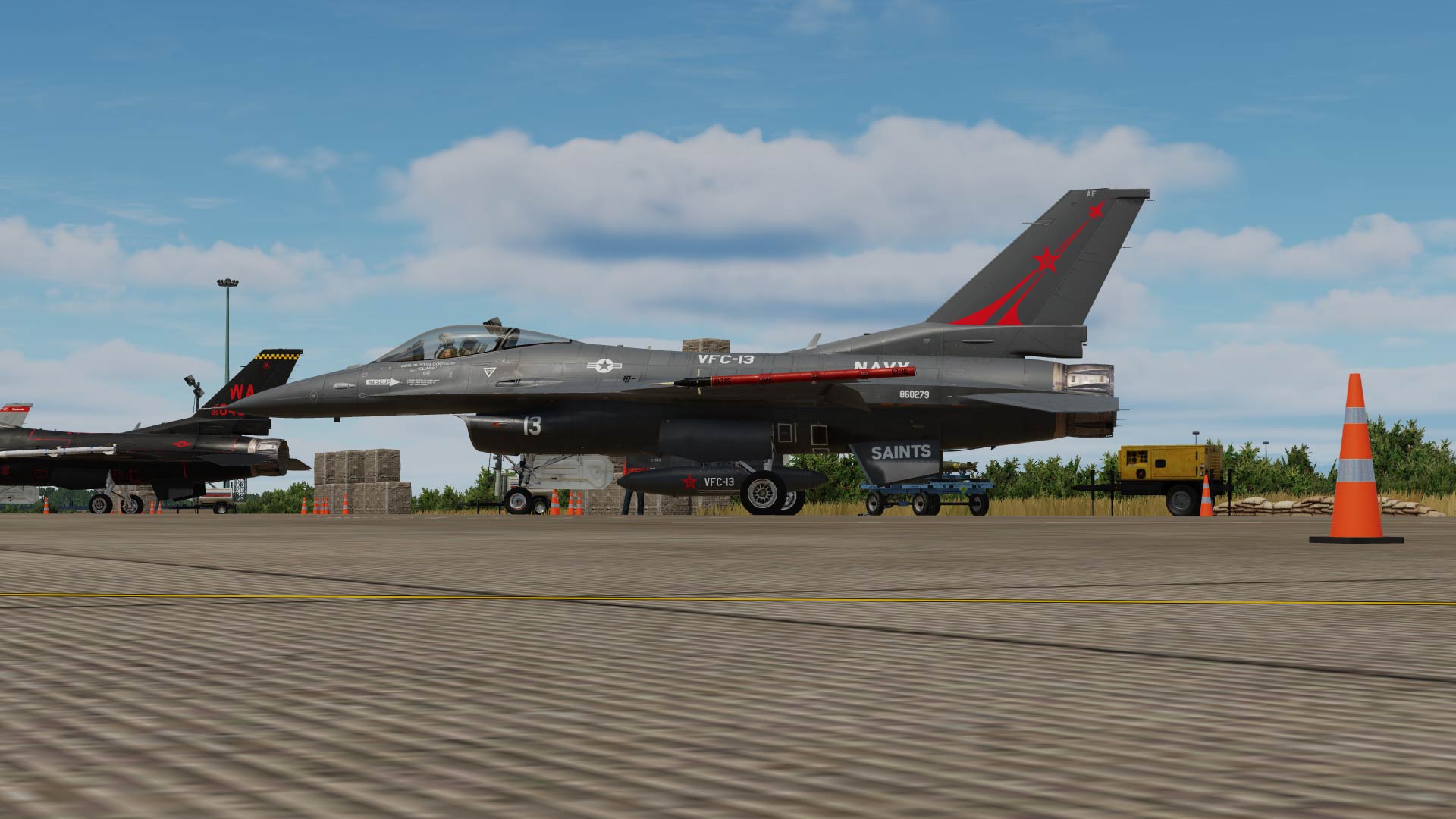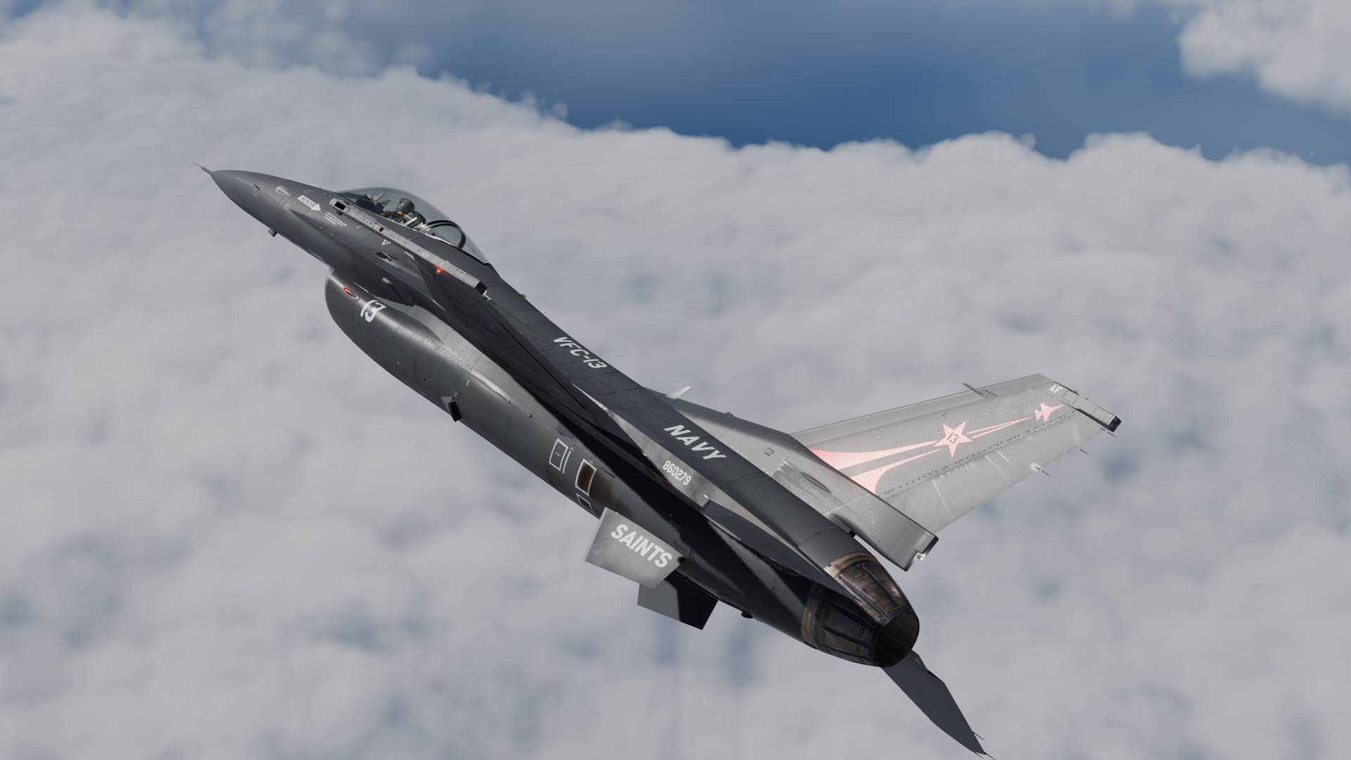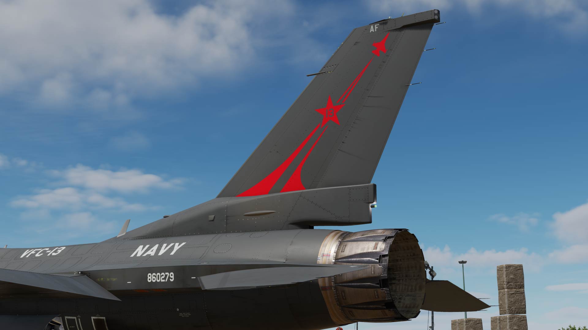 This jet is a complete rework of the stock viper to represent this VFC-13 bird, with the correct reinforcement plates and more.