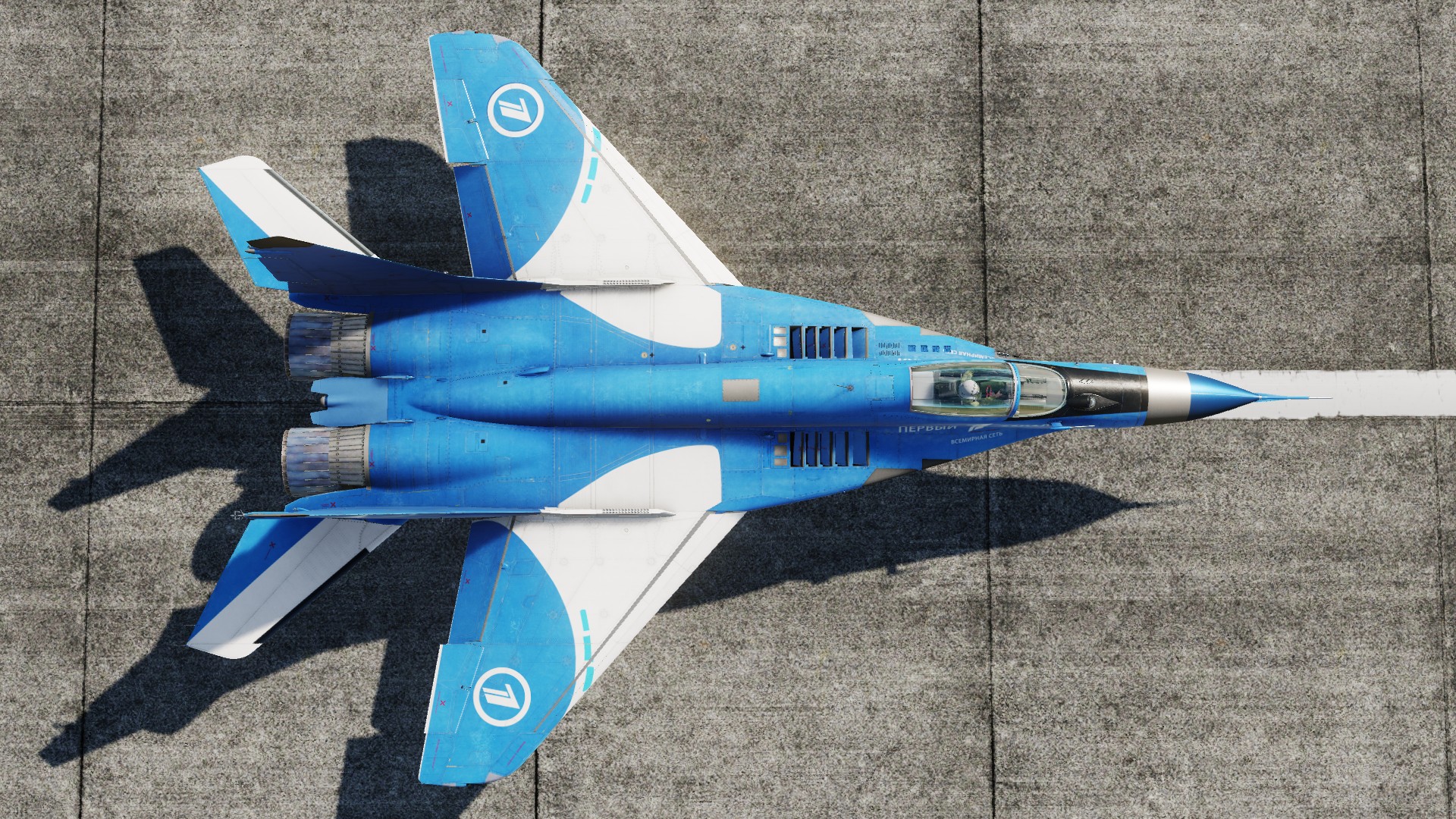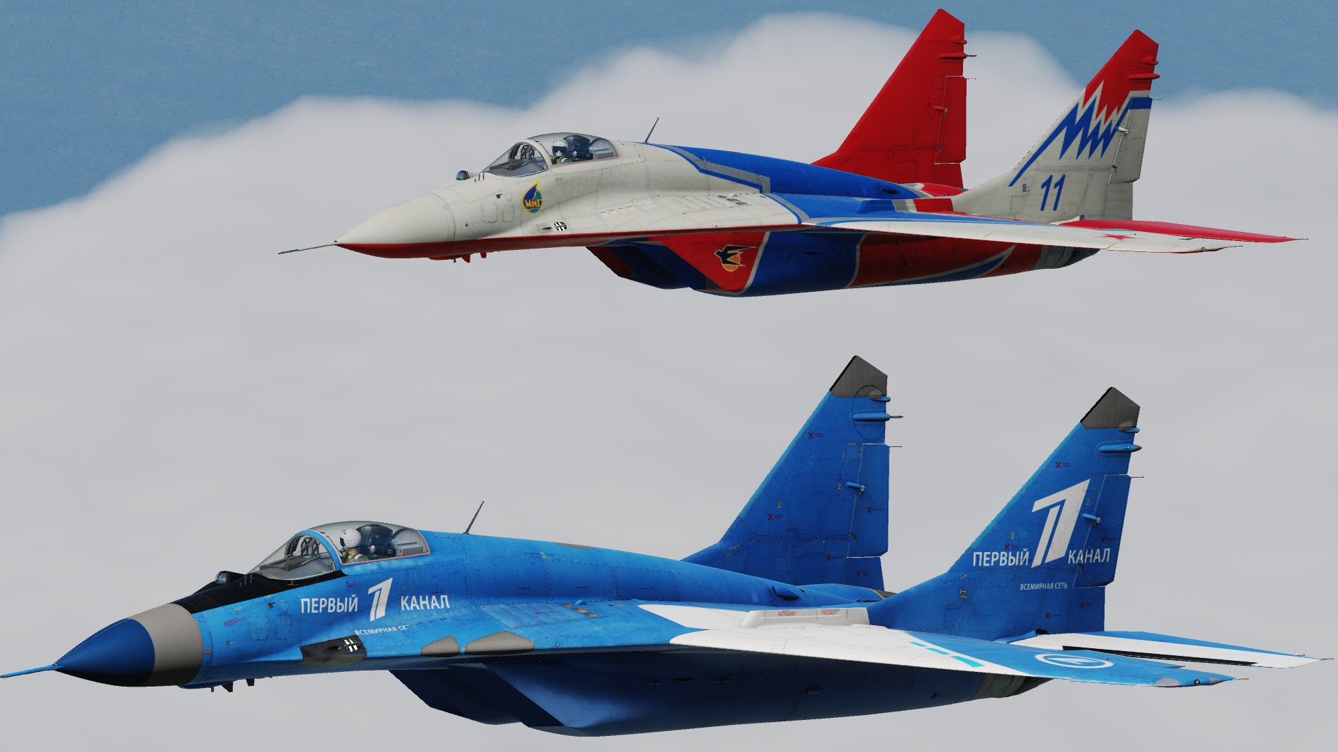 МиГ-29УБ "Первый канал" на МАКС-2015 участвовал в гонках между автомобилями и самолетами.