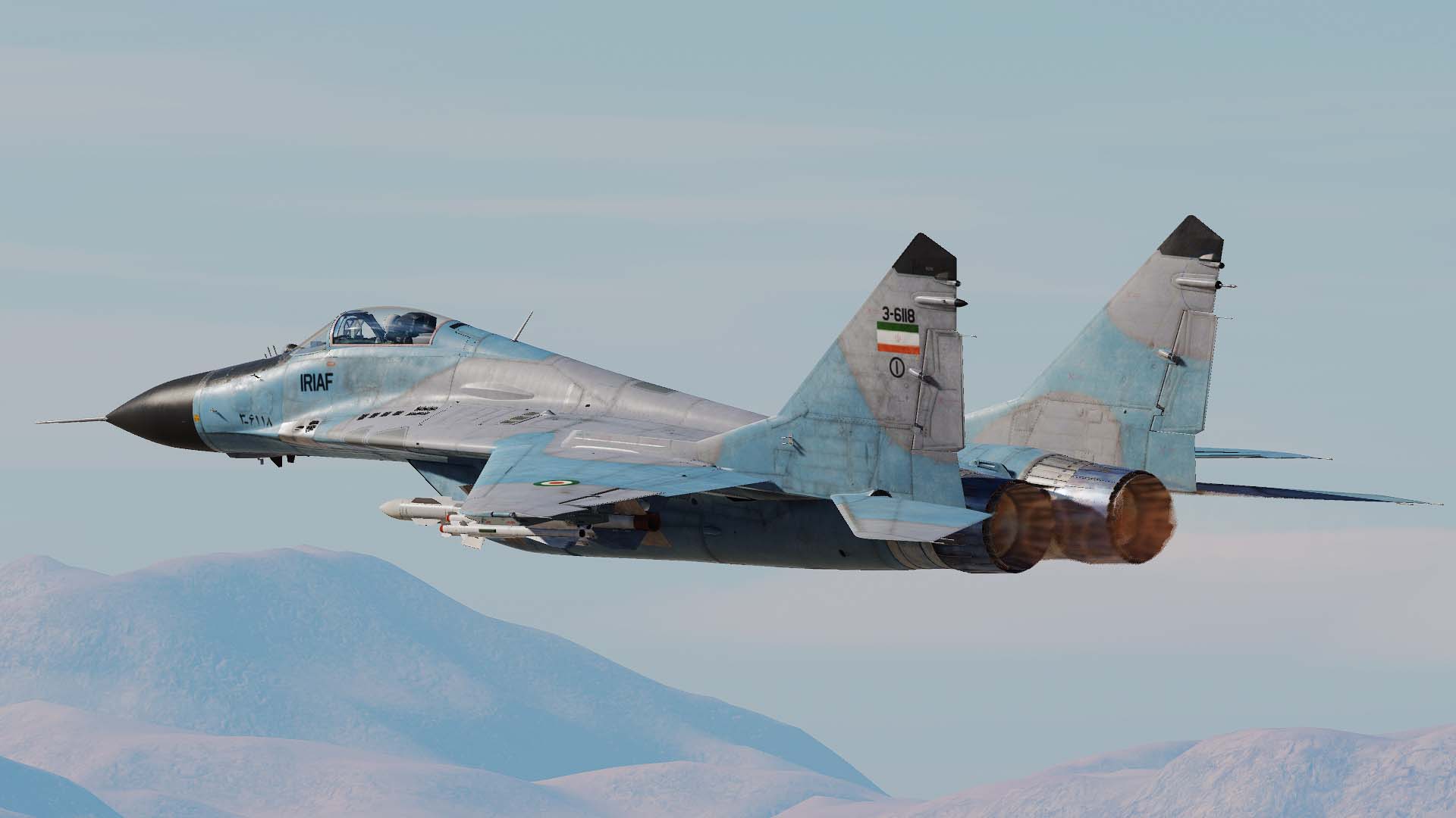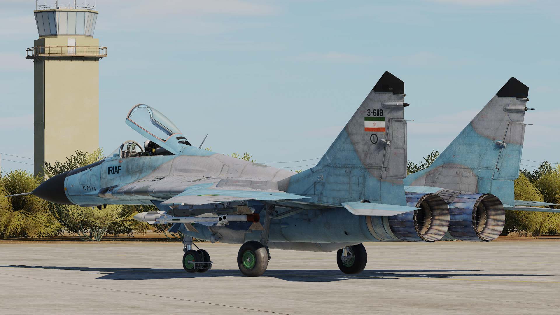 This is an accurate recreation of the IRIAF MiG-29 Serial number 3-6118 with a grey-blue camo using custom roughmets, normals (provided by Crash), and weathering.