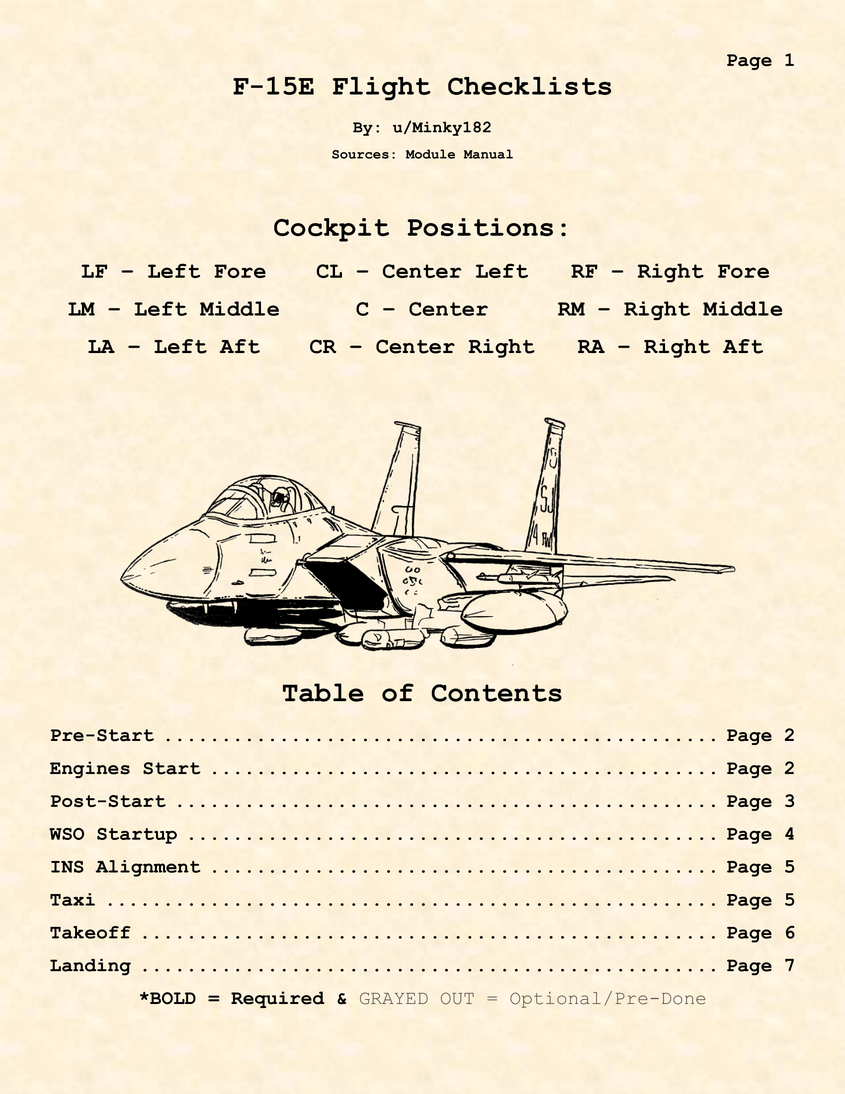 Printable PDF (without a background) can be downloaded here: https://www.dropbox.com/s/kz465vmh9l3fjra/F-15E%20Checklists%20No%20Background.pdf?dl=0