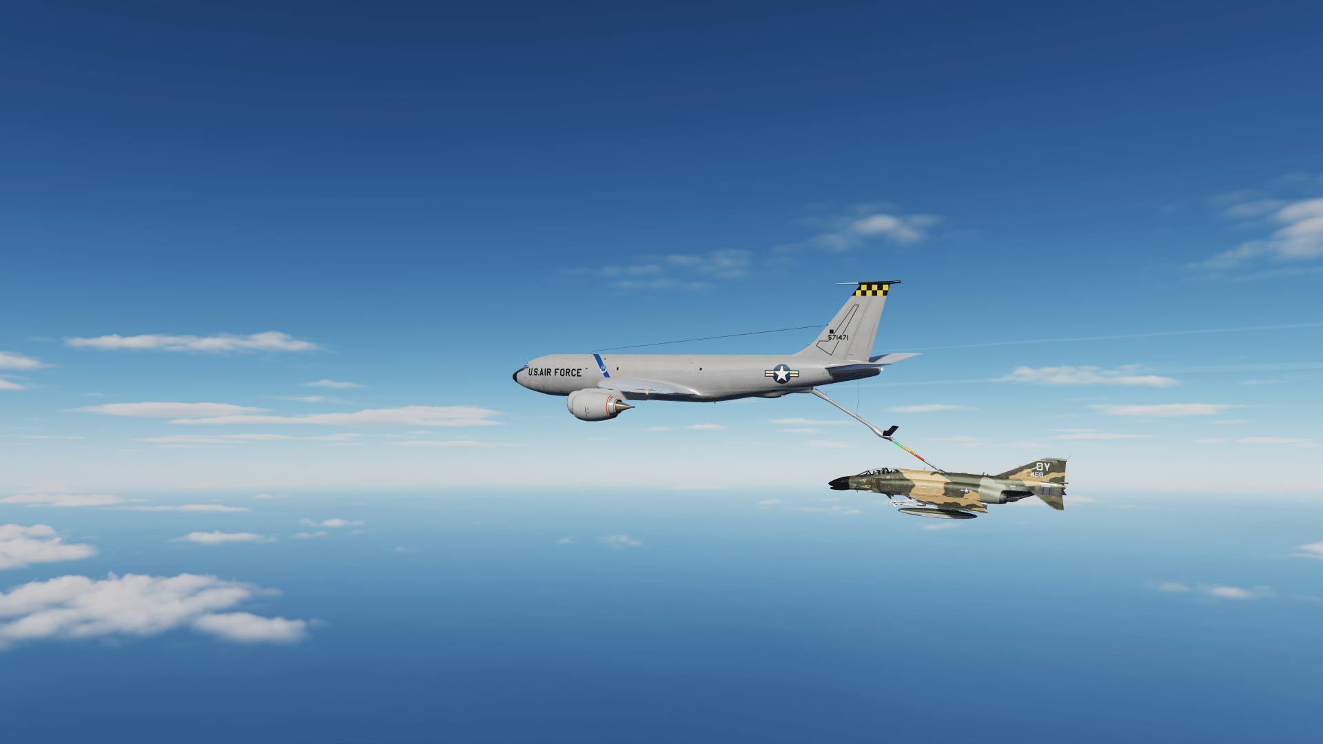 I used Easypeac3's template as a starting point for this skin. Included is 1 skin for the KC-135 and 2 for the KC-135 MPRS. The MPRS is the only version I was able to get to actually be bare metal so the other two skins are matching gloss light gray that I think do a decent job of filling in if you want both planes in the same mission.