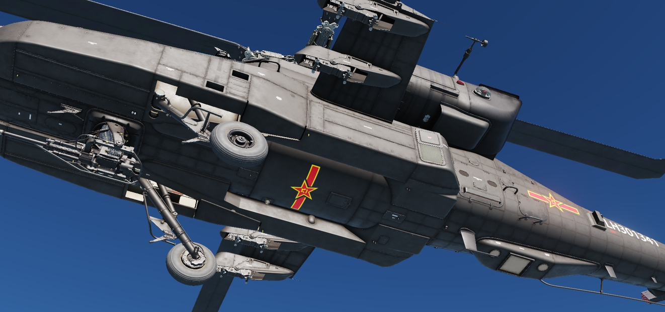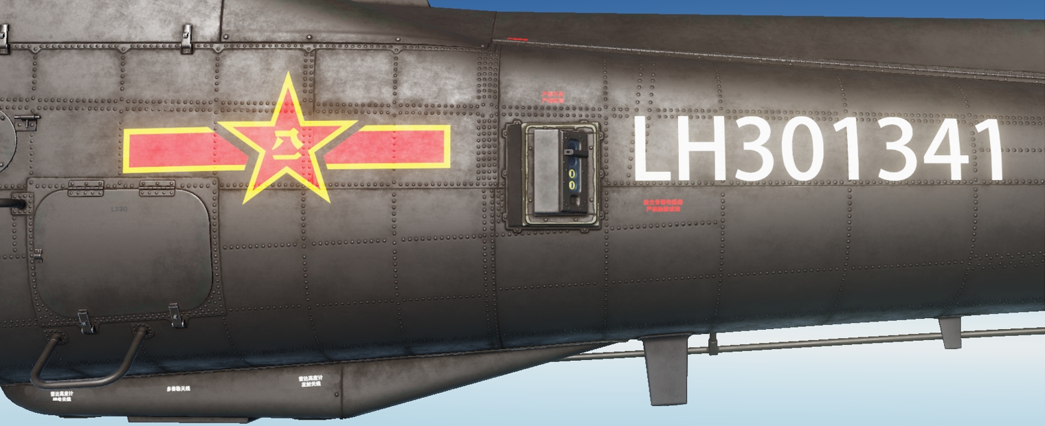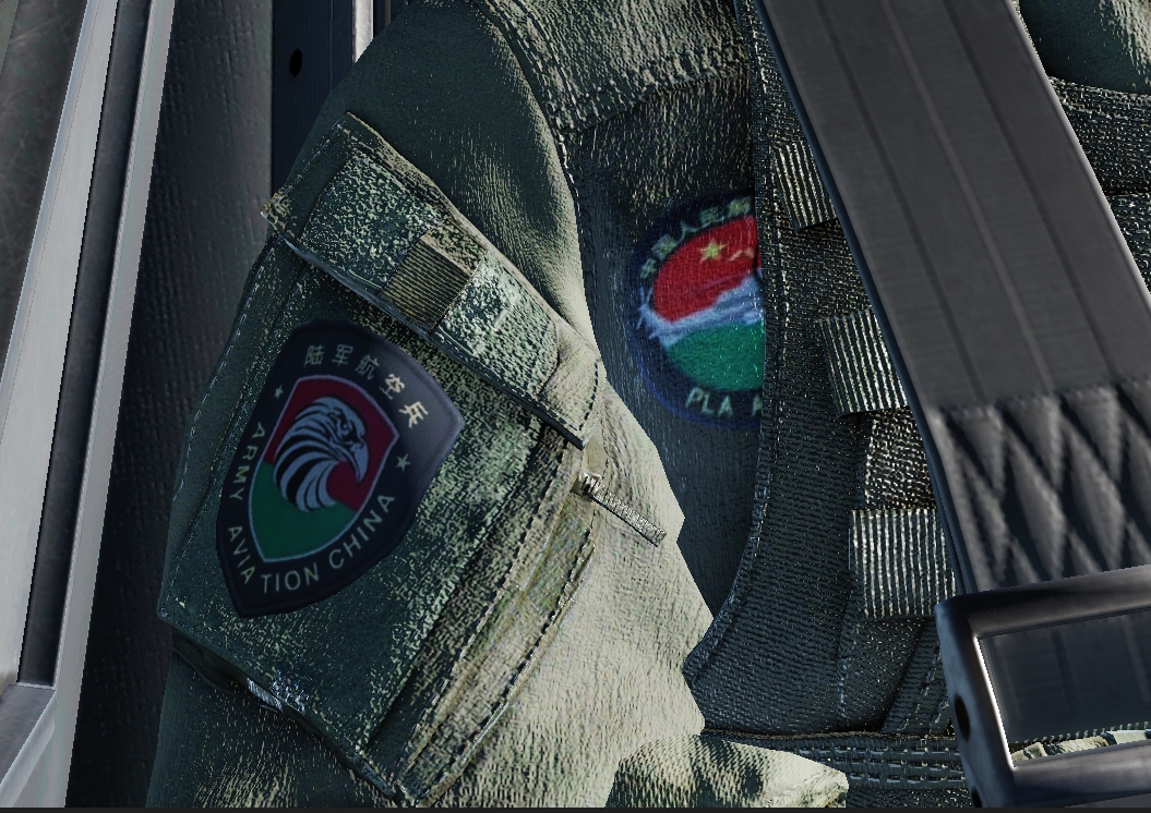 Chinese People's Liberation Army Army Aviation Corps skin, fuselage Chinese characterization handing inside and outside (external view), full details of the pilot: helmet Army markings, Army Aviation Corps armband, chest markings, flight rating badge.