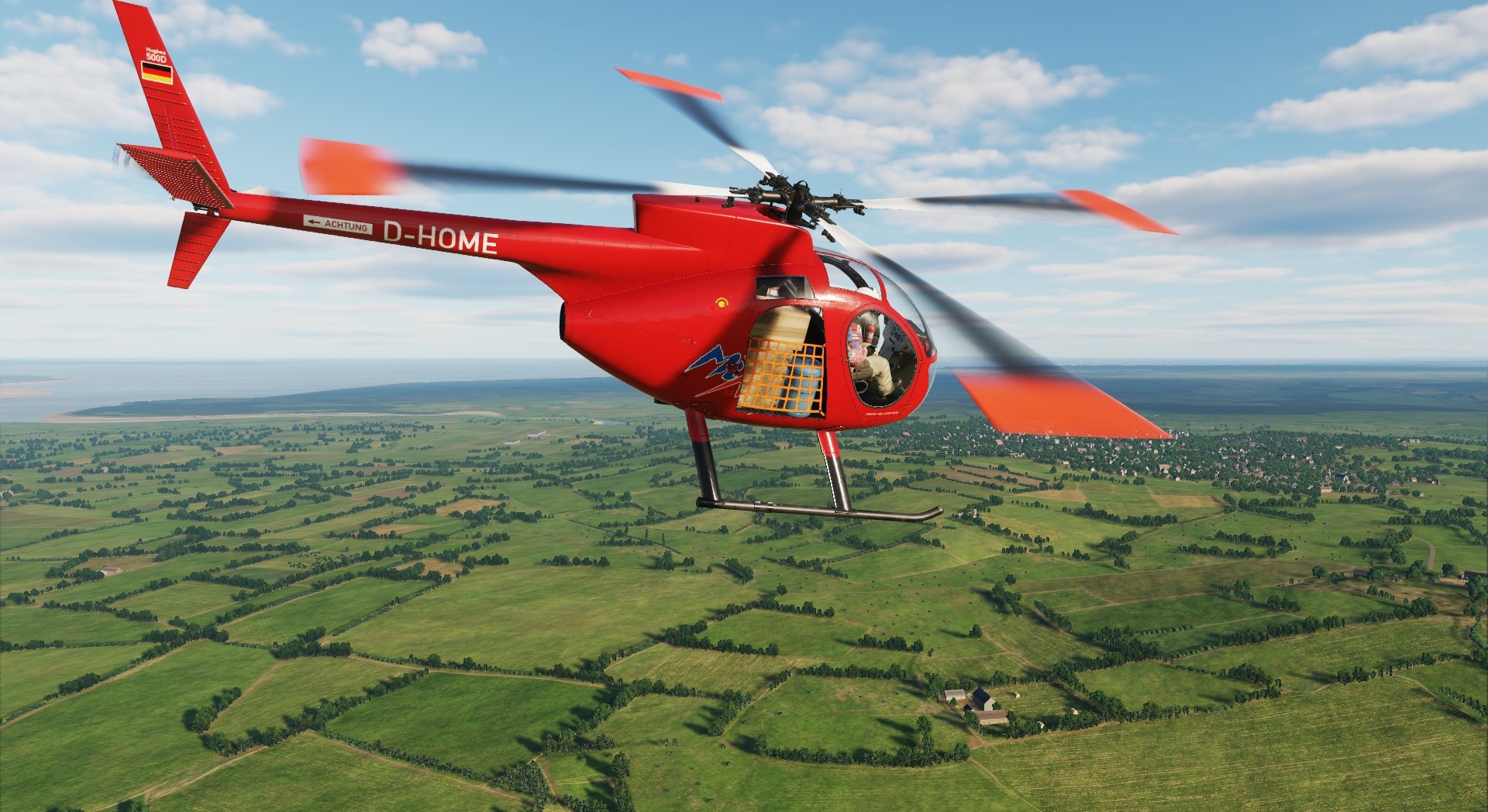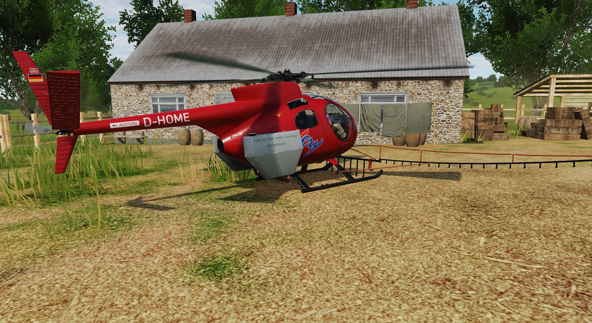 This skin is supposed to be a rough representation, of the Hughes 500D of Hahn Helicopter, with the Registration D-HOME, as it looked like in late 2009.