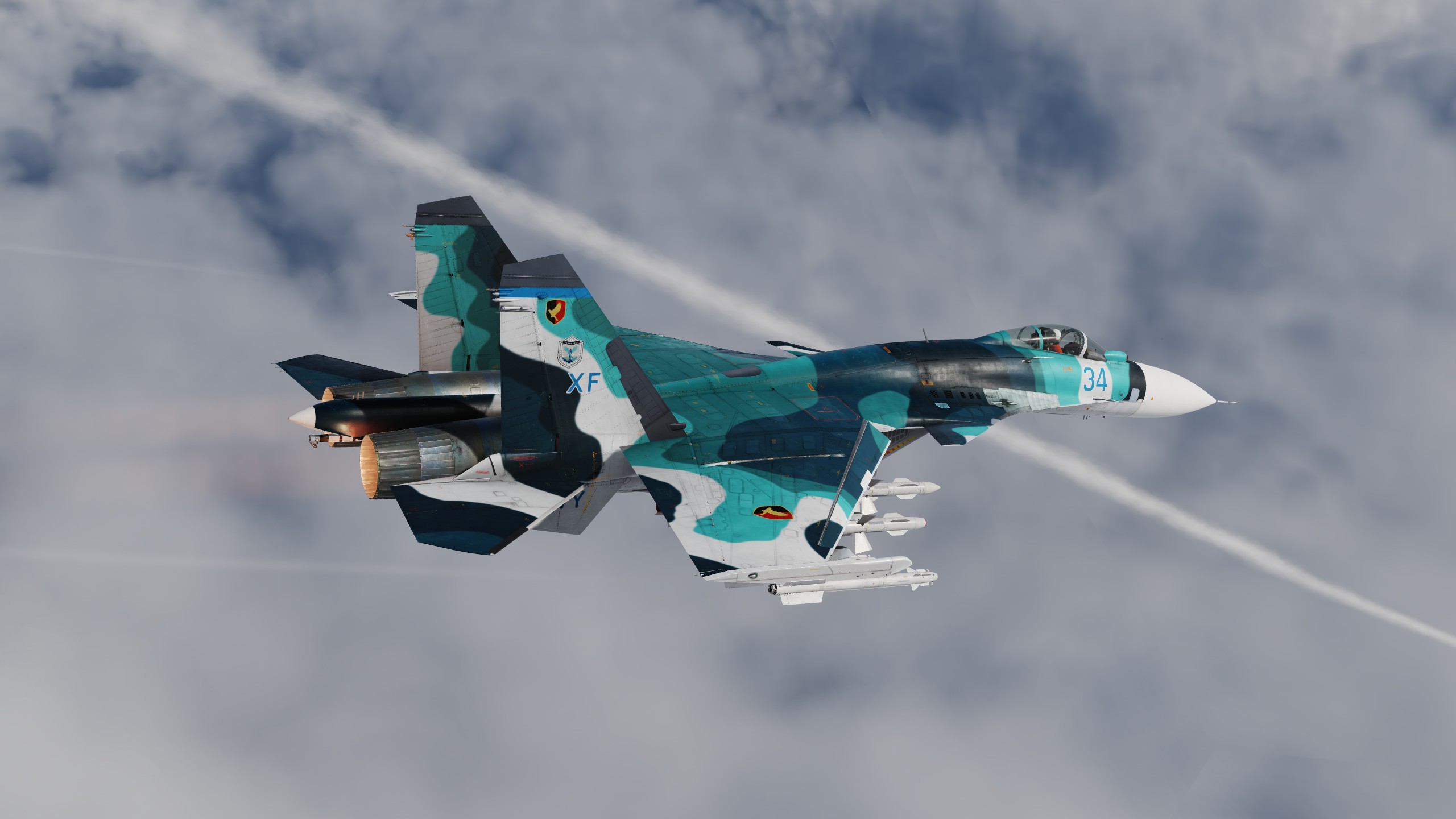 Estovakian Navy, North Sea Fleet 7th Carrier Air Wing, Carrier Air Squadron 71 "Vantoasen" Su-33 Flanker-D. Includes two liveries, flight lead and line.