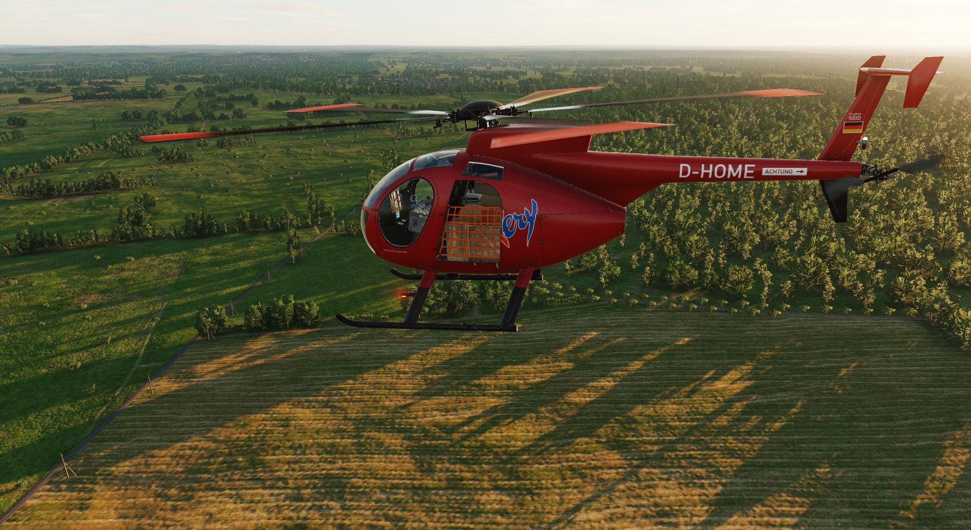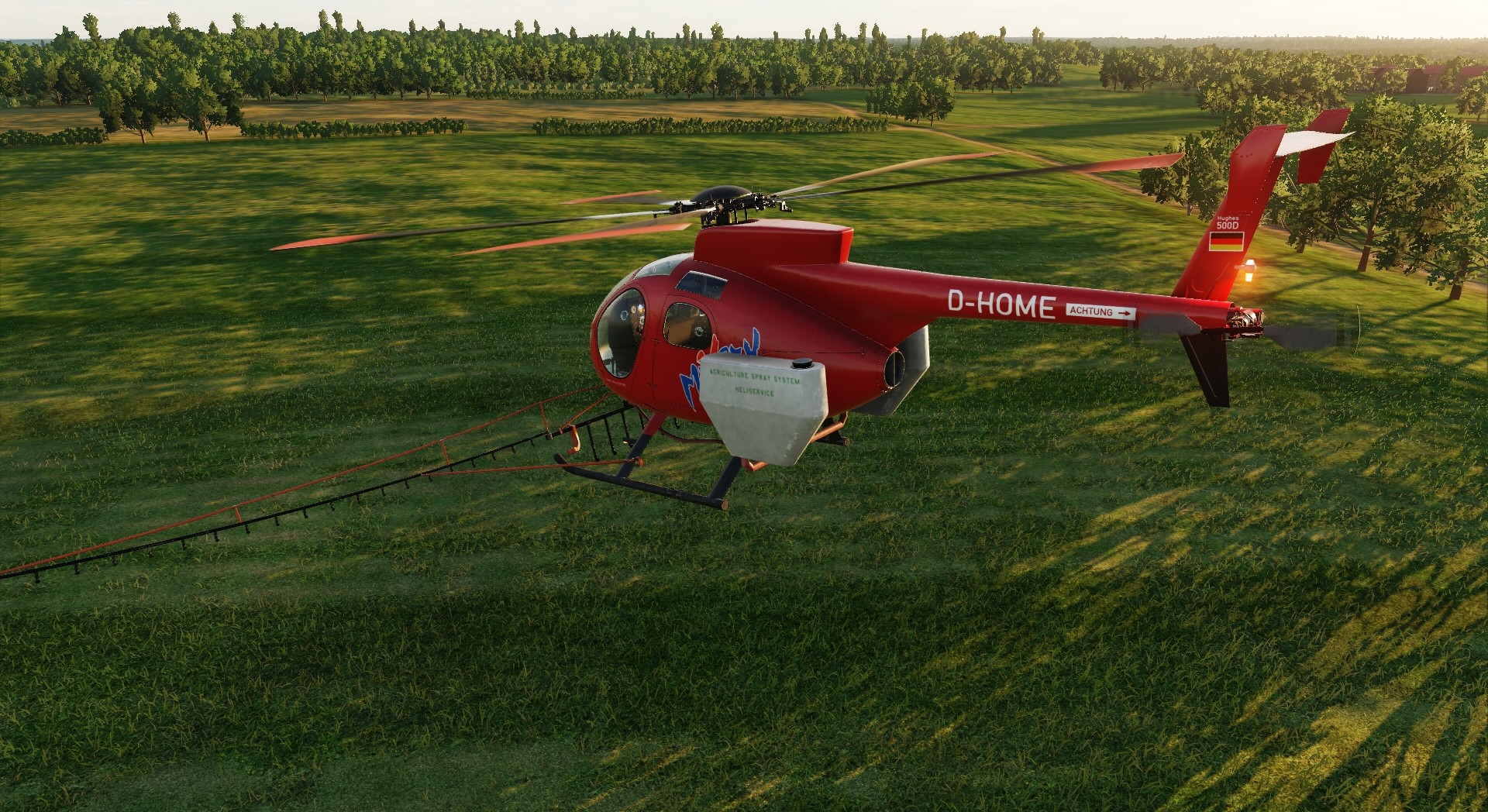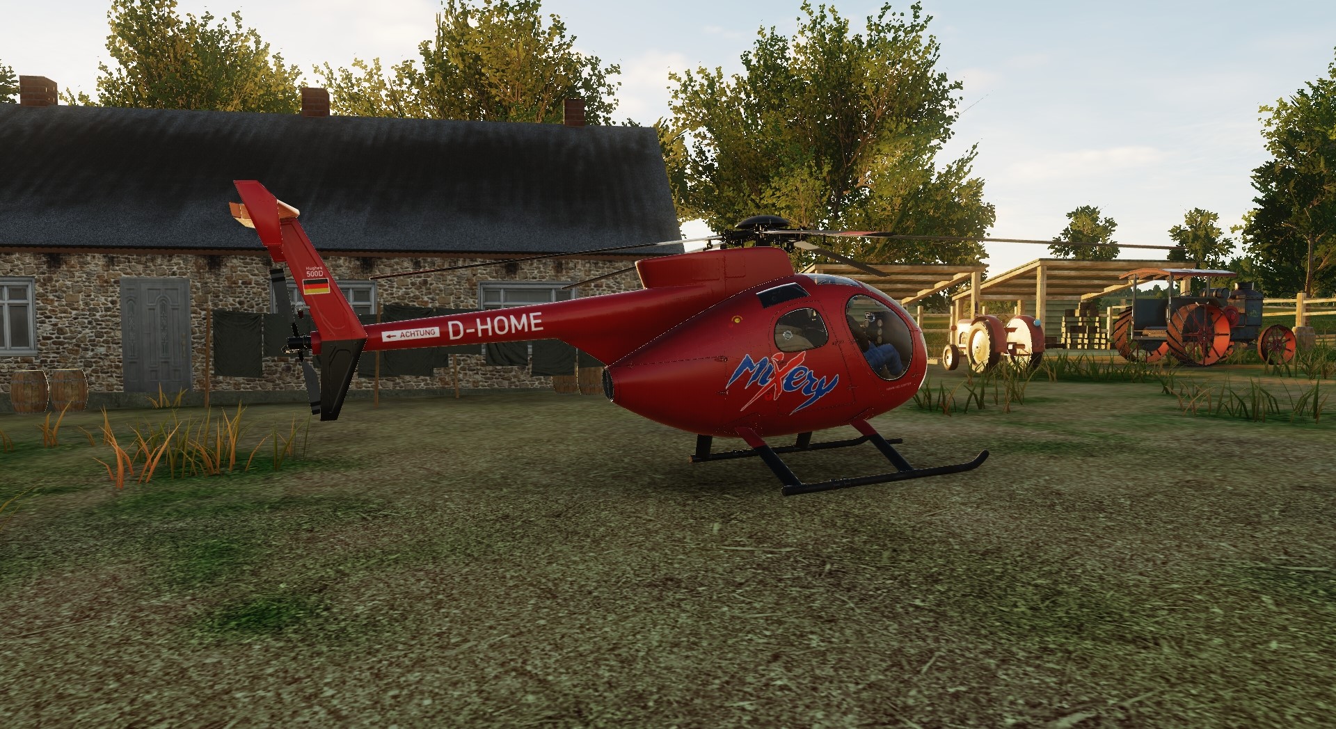 This skin is supposed to be a rough representation, of the Hughes 500D of Hahn Helicopter, with the Registration D-HOME, as it looked like in late 2009.