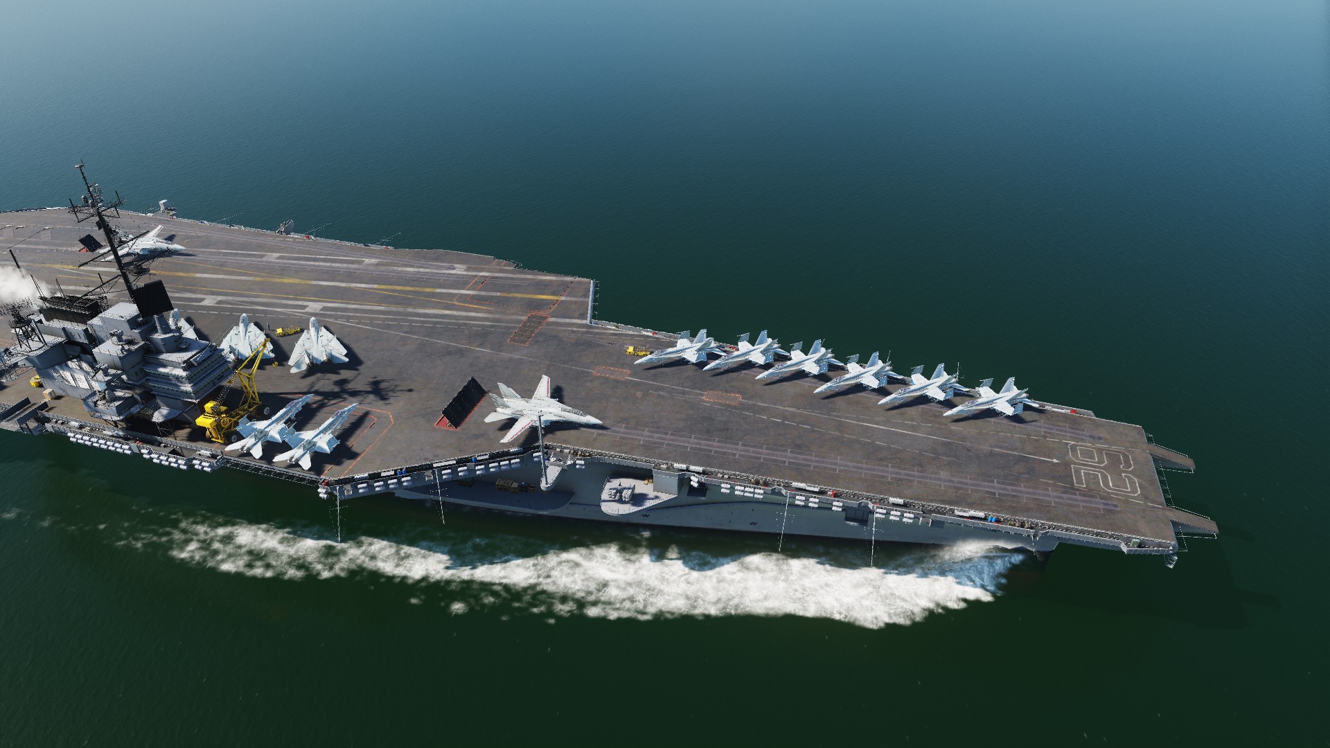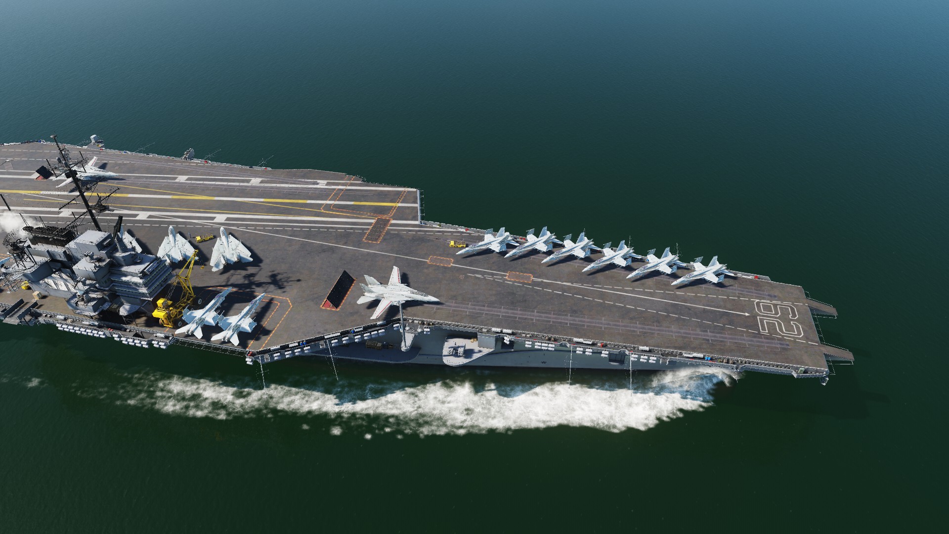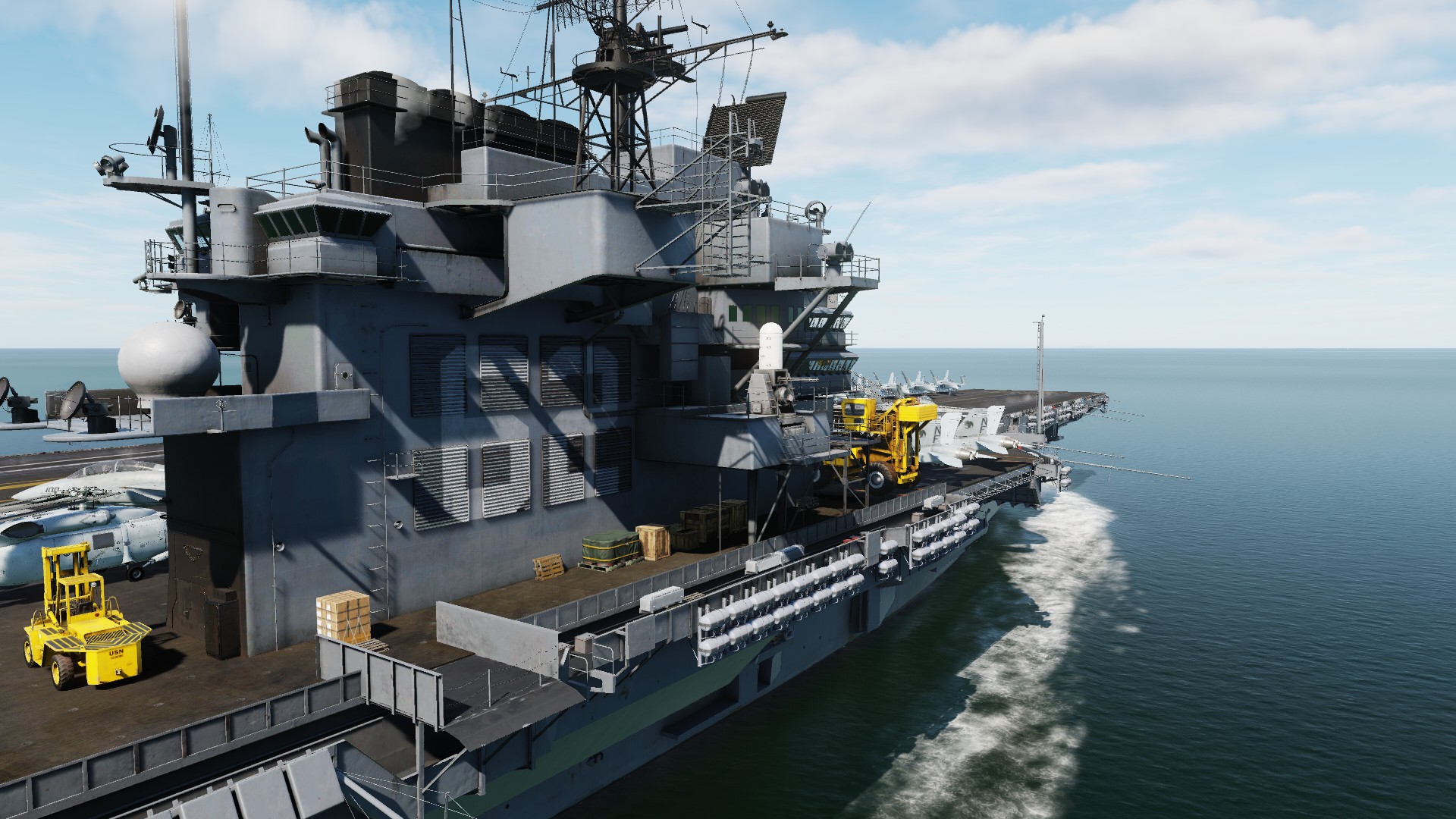 Includes two versions: A "distressed" version where the flight deck more closely matches the default Forrestal in the game and a "clean" version with more easily visible deck striping utilizing (with permission) Joshua Pemberton's wonderful Forrestal Deck Paint Upgrade mod that can be found here: https://www.digitalcombatsimulator.com/en/files/3319070/