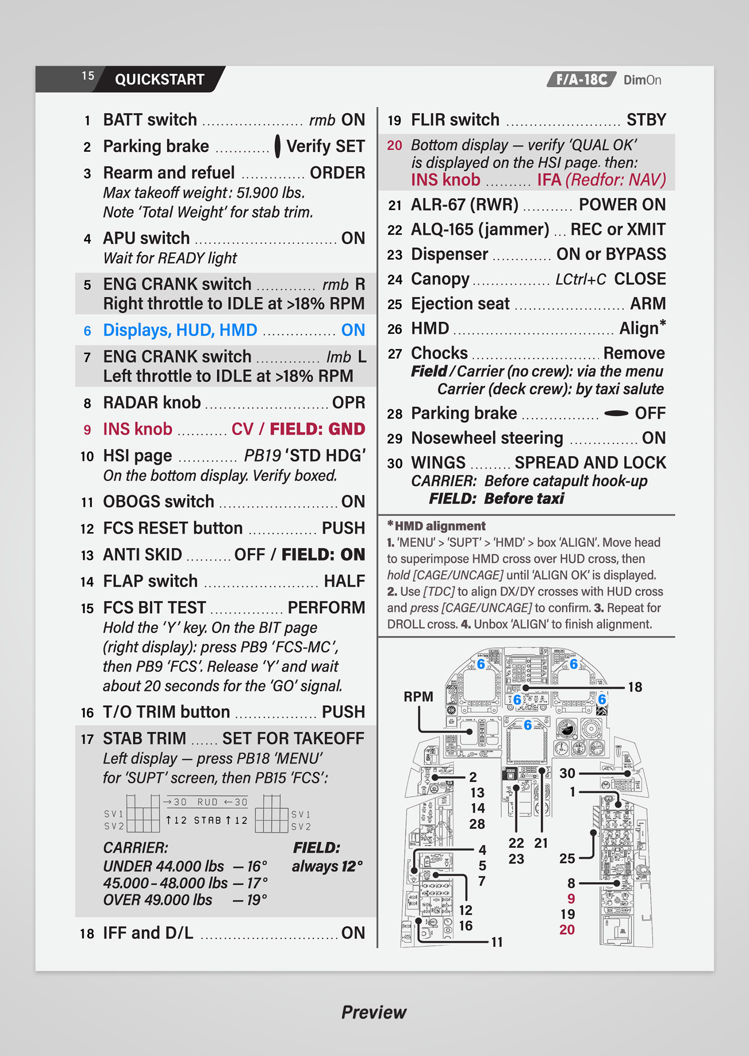 Hello. Just wanted to share my own version of the Cold Start Procedure, I'm still learning the aircraft but I've refined this document over the last few days and it has really helped me to learn the cold start. I've provided it both in PDF format and in Kneeboard format.