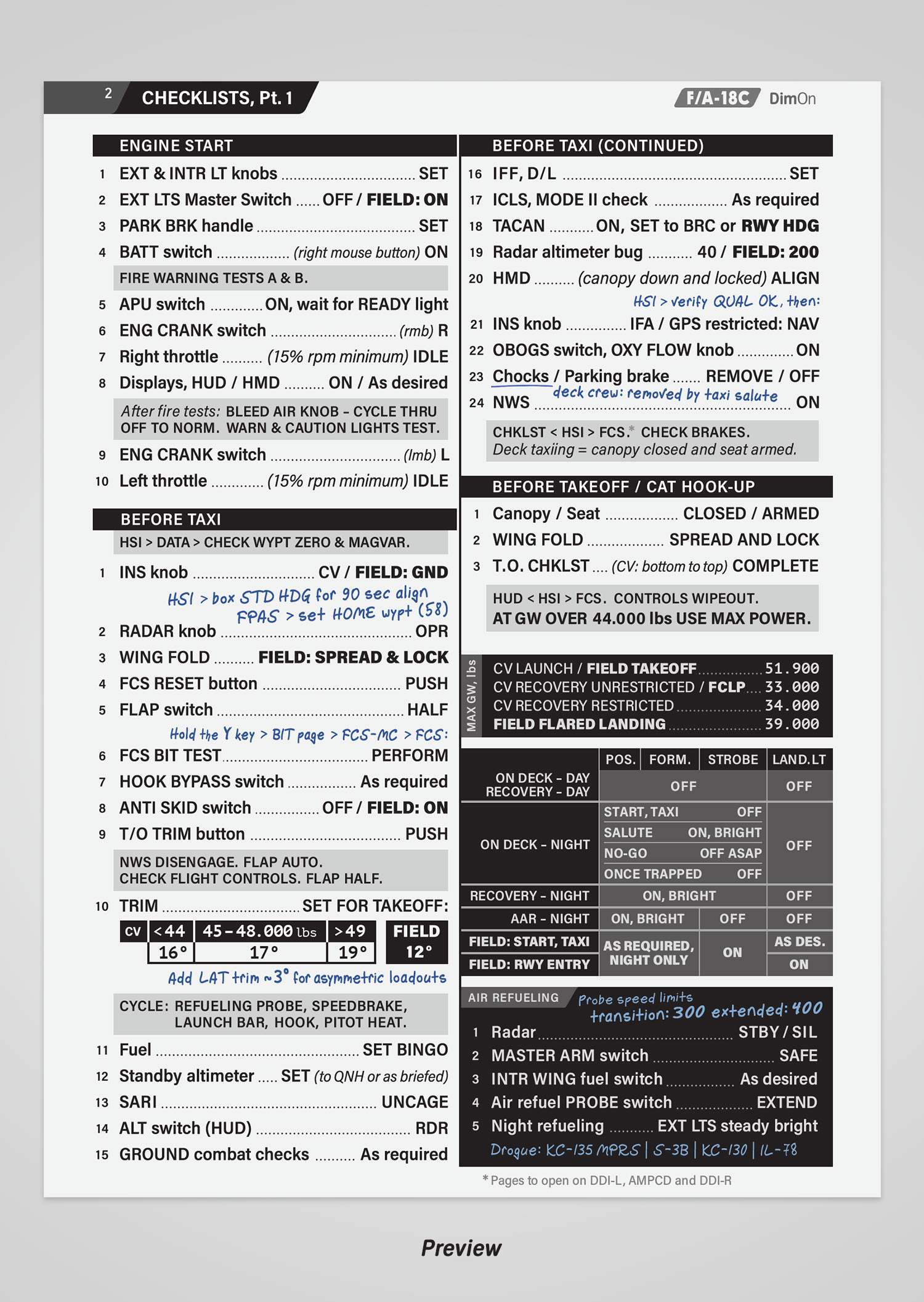 F/A-18C Kneeboard Suite - Checklists and Ordnance - Updated 12 October 2025