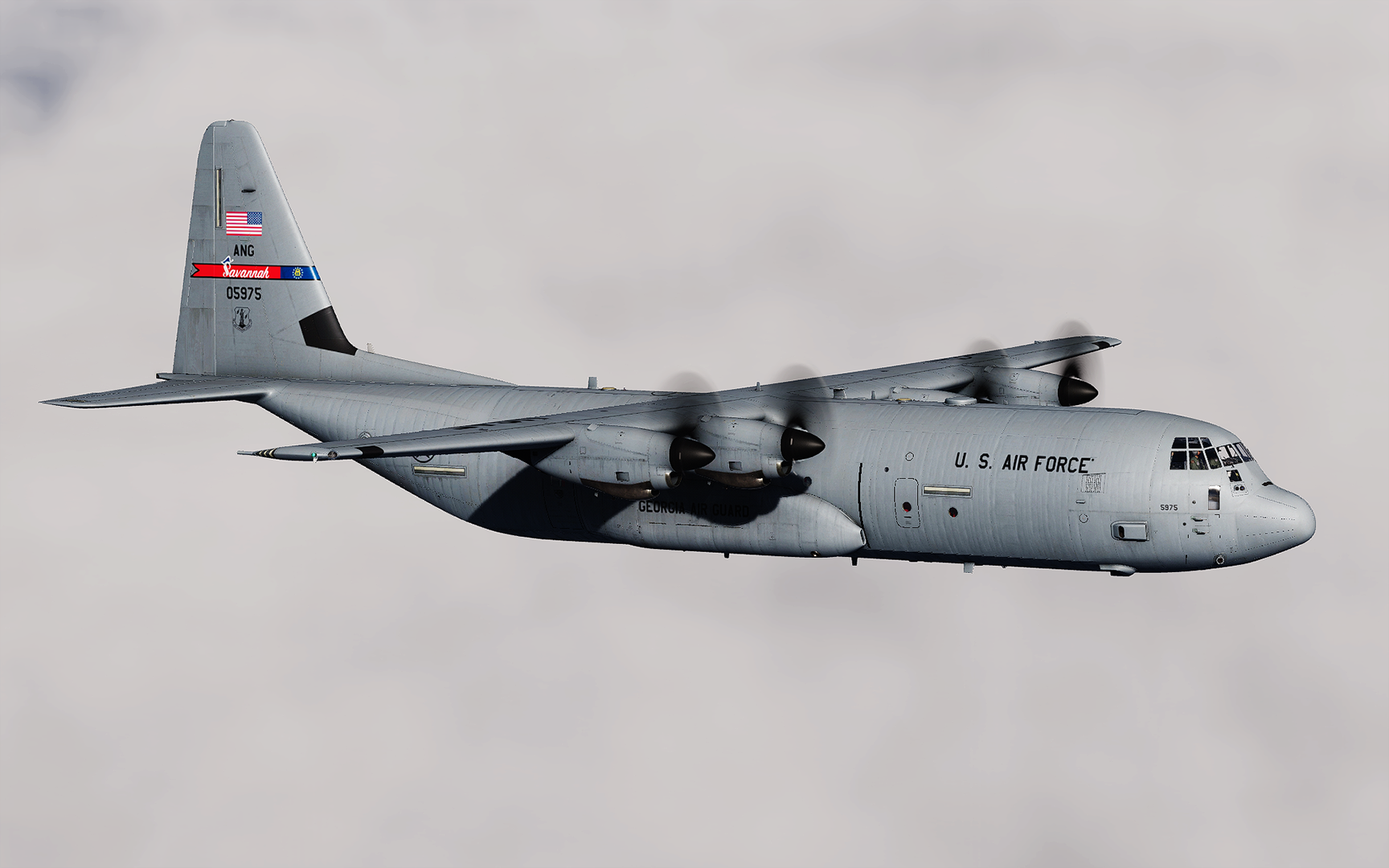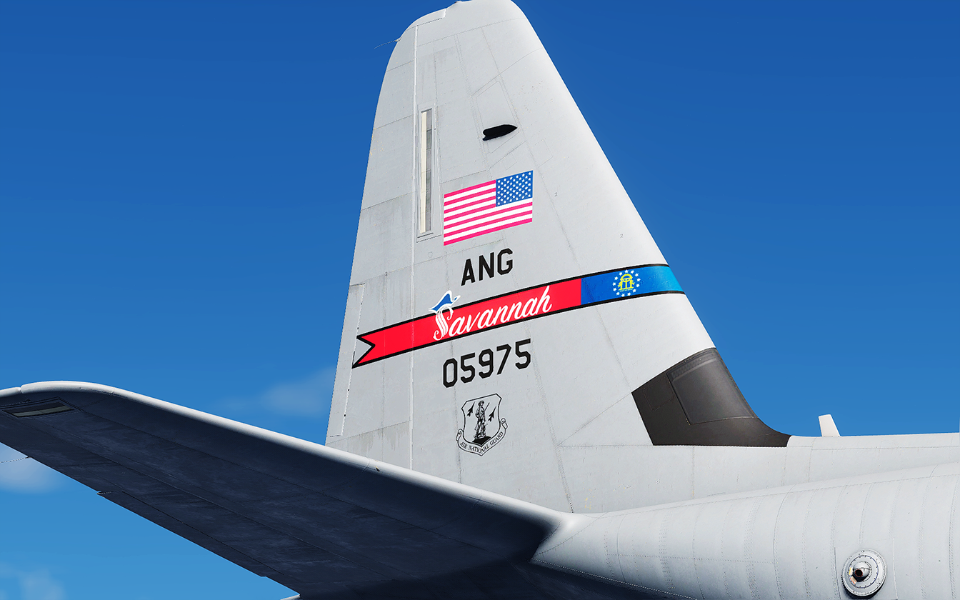 Skin for the C-130J-30 from DCS this is the first C-130J that the 165th AW had. The plane is nicknamed Spirit of Savannah with text above the door. Serial number: 20-5975.