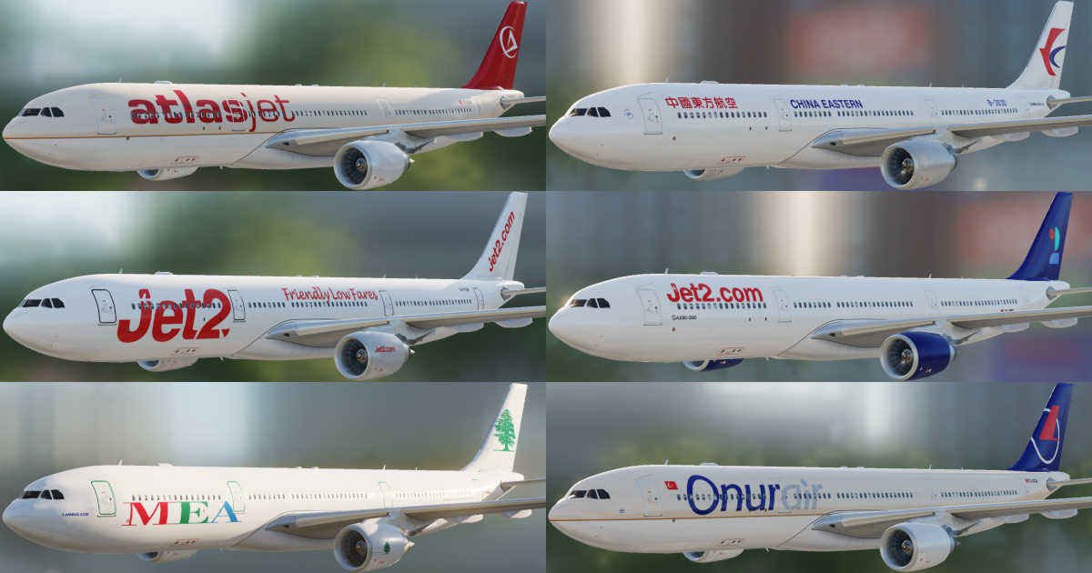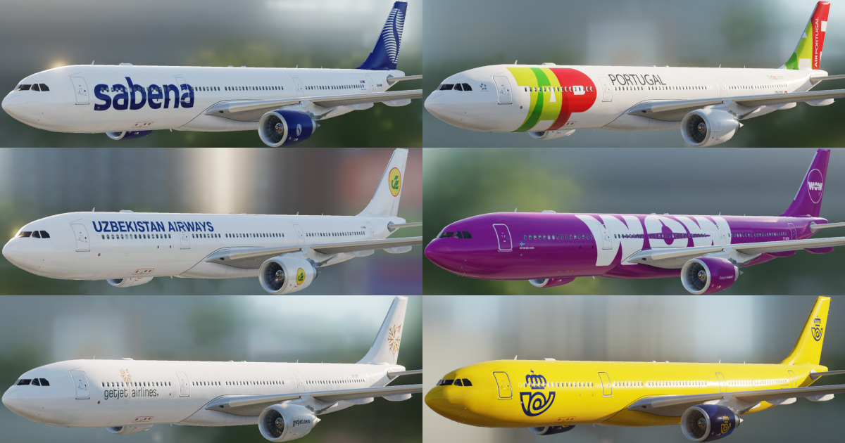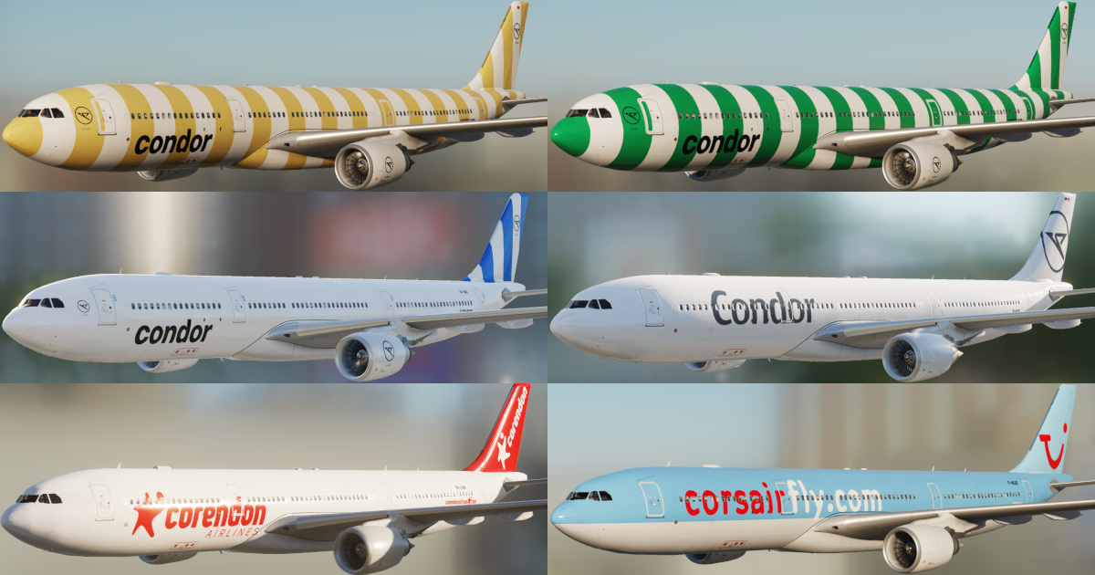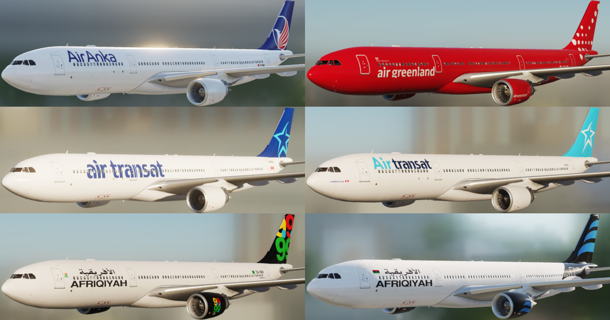 Skinpack of 24x passenger / charter airlines' liveries for A330 in Civil Aircraft Mod.
