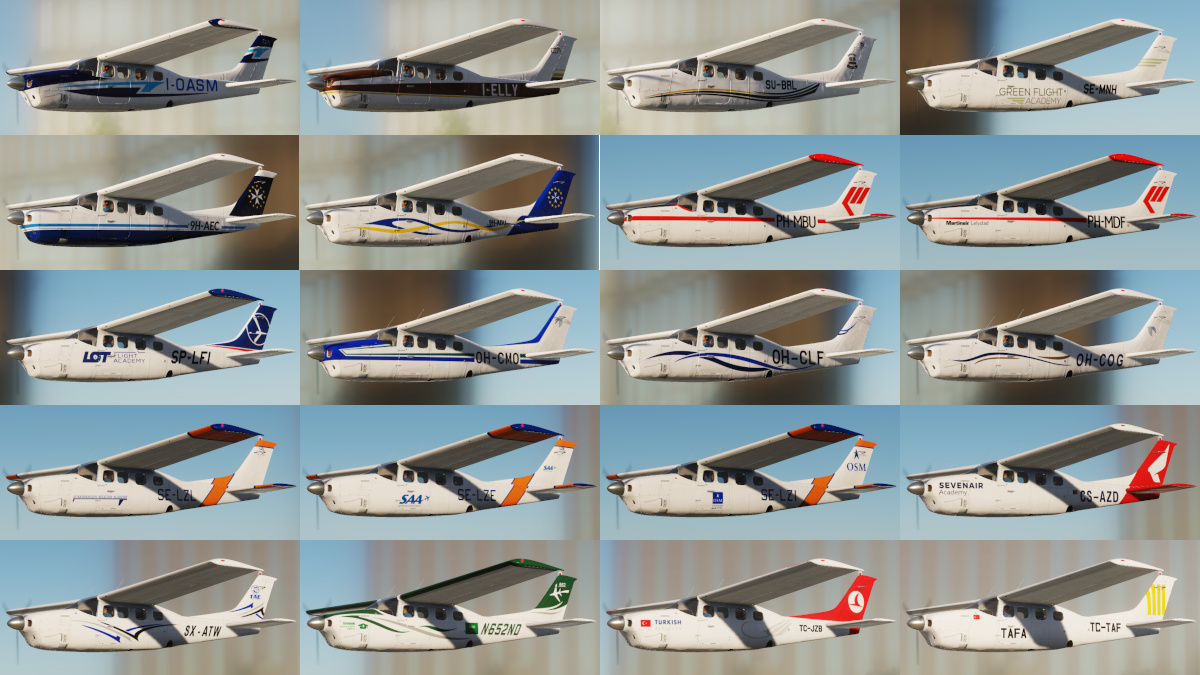 Skinpack of 20x Flight Academy, Aviation Academy liveries for Cessna 210 in Civil Aircraft Mod.