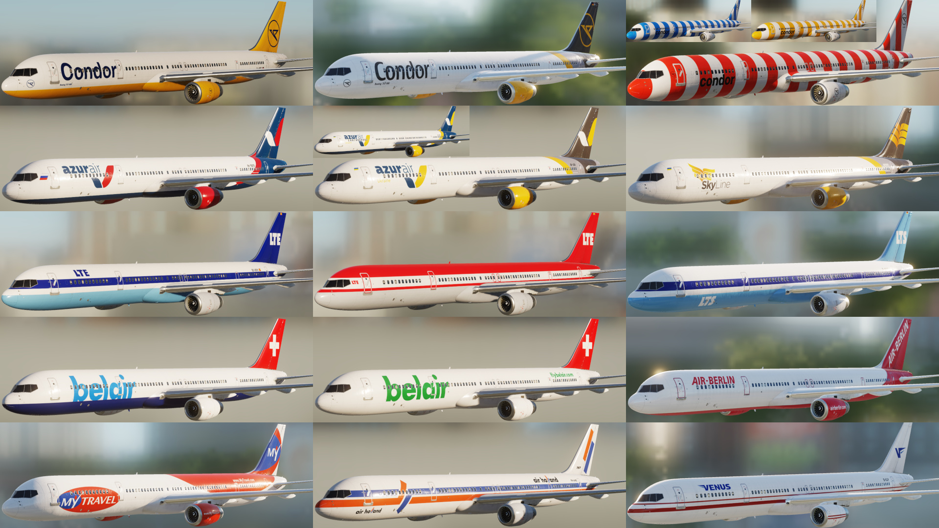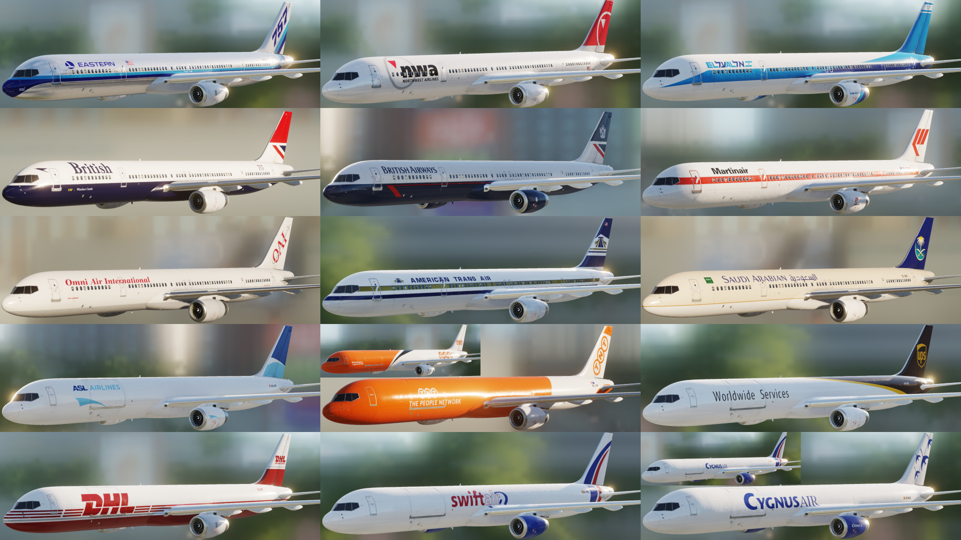 Skinpack of 50x passenger / cargo airline liveries for Boeing 757 in Civil Aircraft Mod.