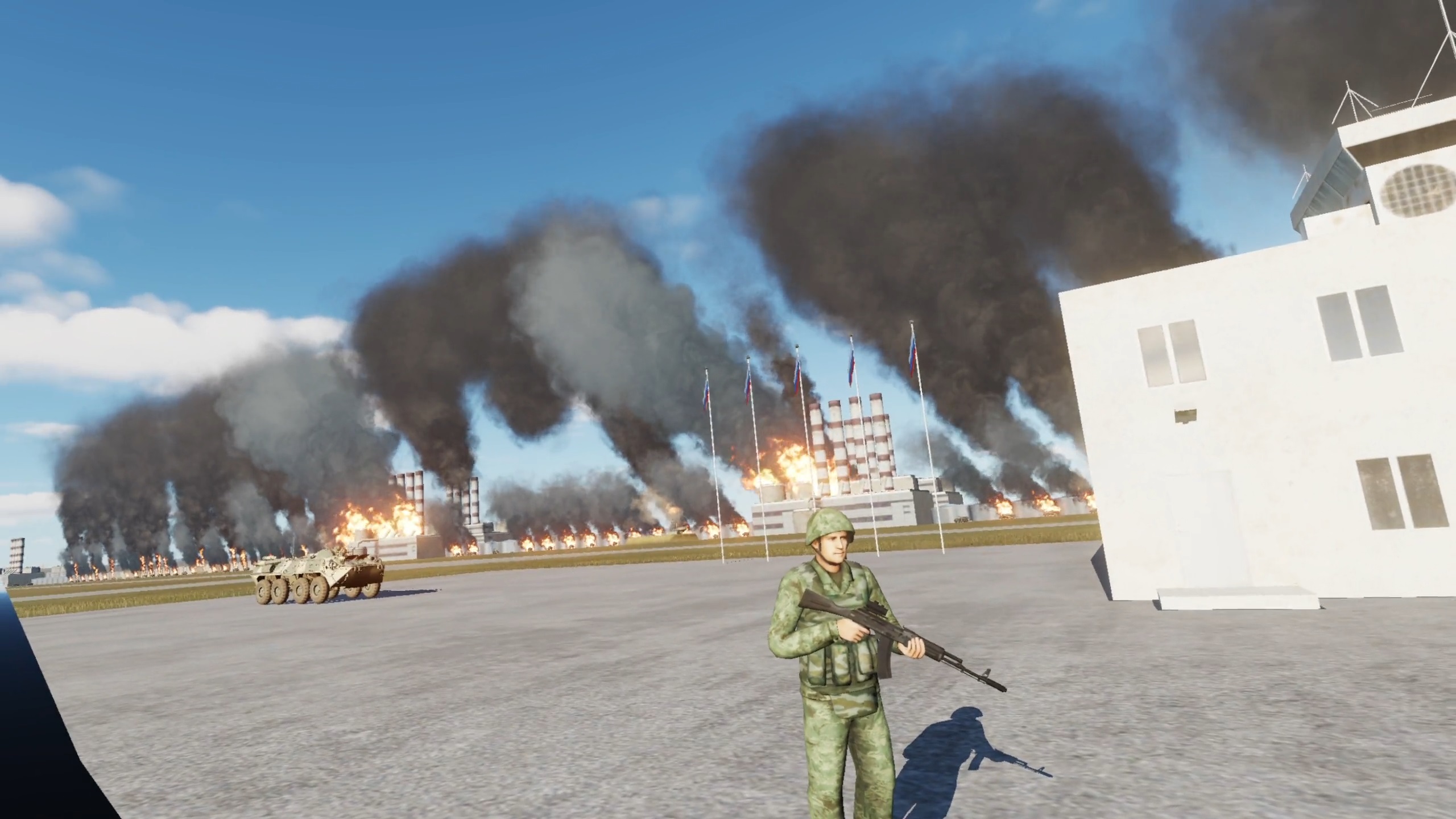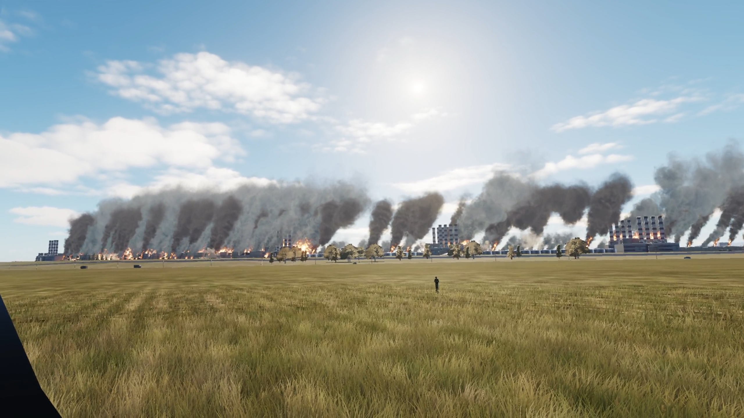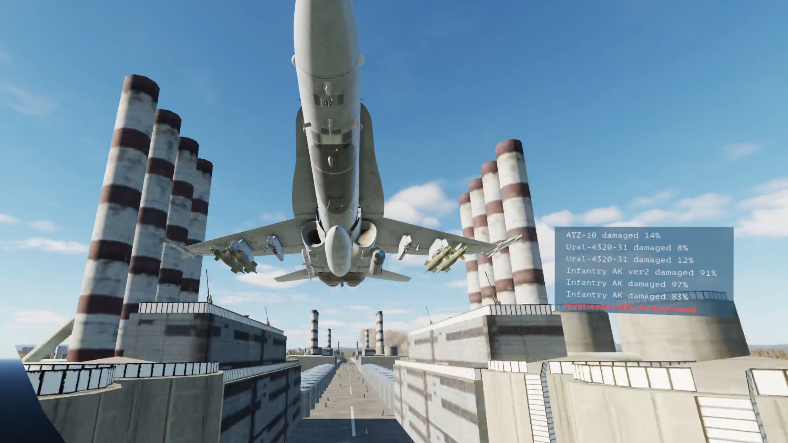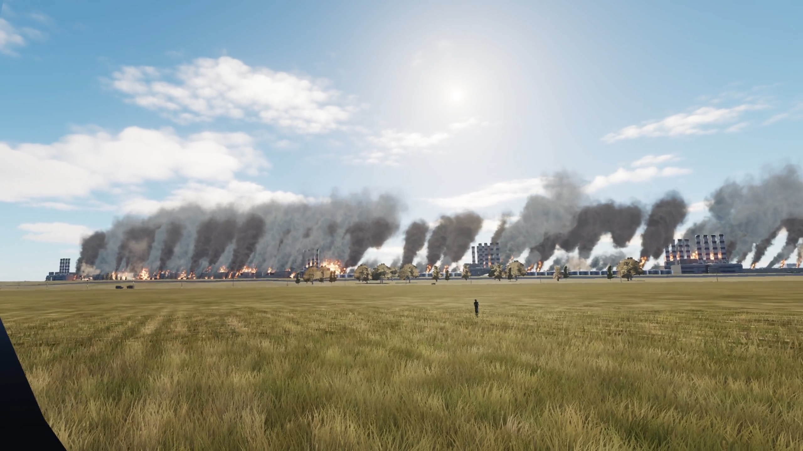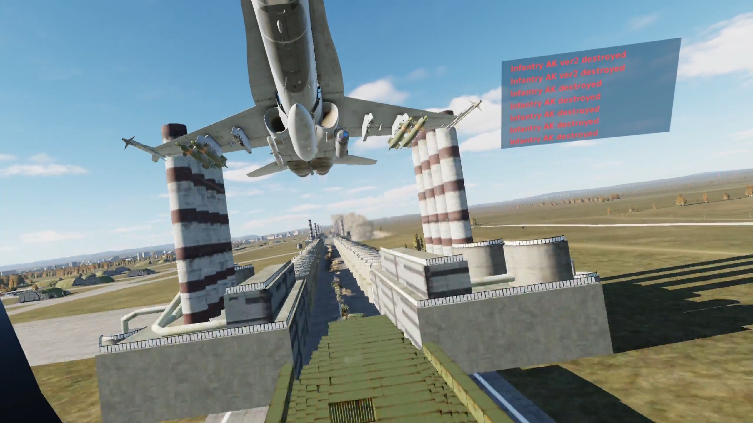 It’s a 2.5km (1.5 mile) oil refinery you can fly through while it blows up. I put it on an airbase and timed 2 Lancers to do a runway bombing over your head while you're flying through.
