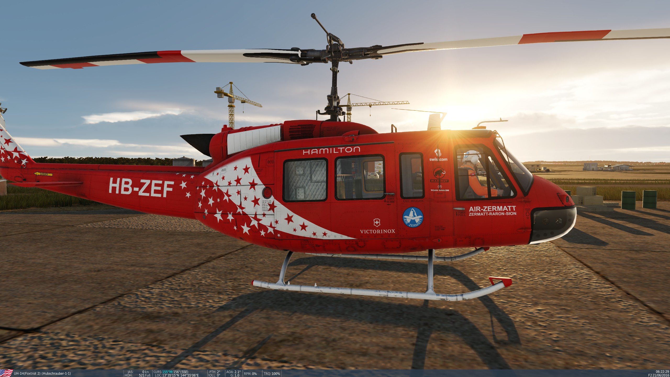 A fictional Air Zermatt Skin for the Huey. I used pictures of the real helicopters to create this skin and keep it as real as possible. Note that this is the updated version which I uploaded on the 4th of May 2023. The swashplate is now black instead of the default green. So I'd suggest to everybody who downloaded it before this date to now download the new version, because it looks much better.
