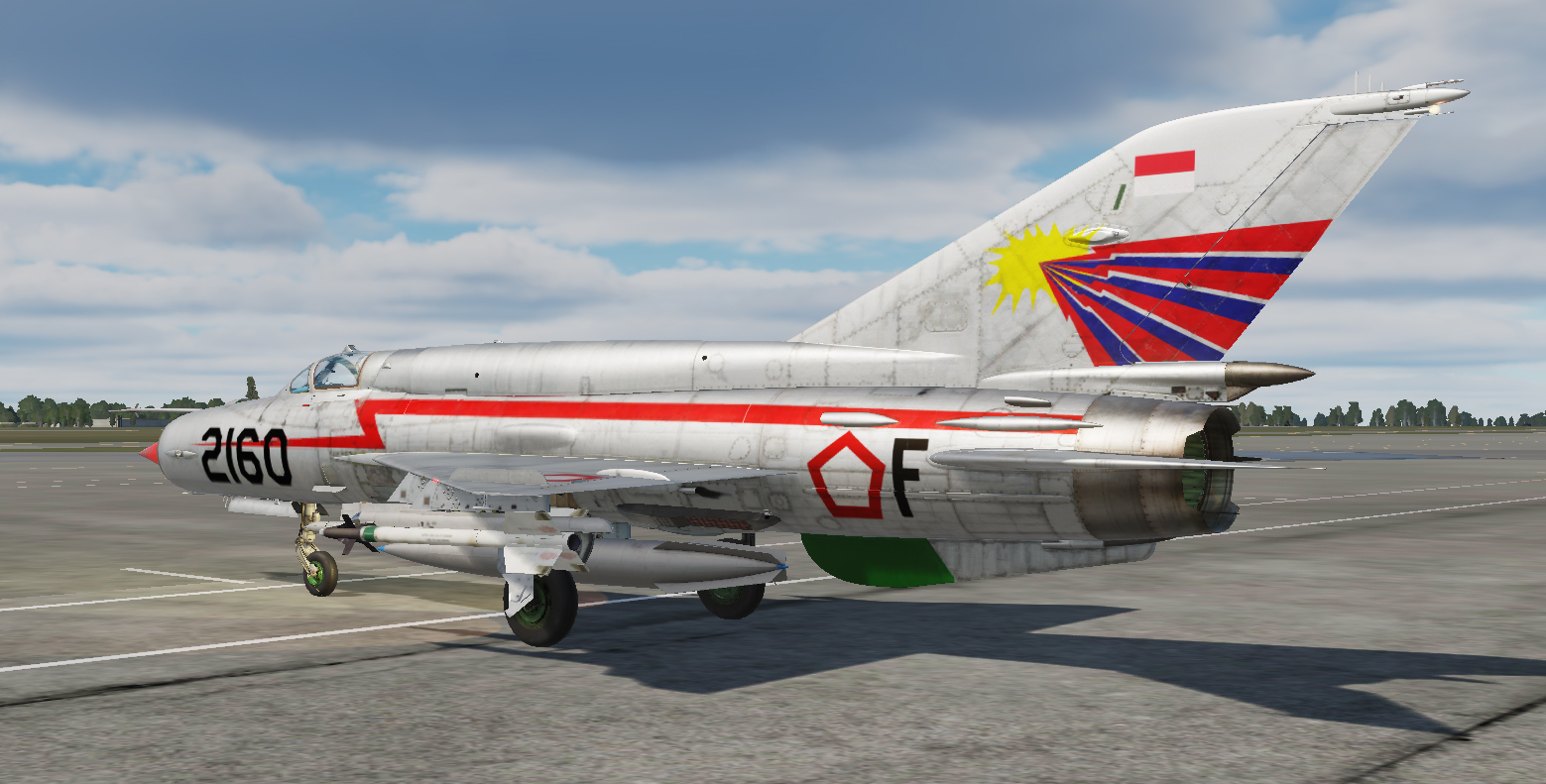 Indonesian Air Force liveries for MiG-21F-13 ported into MiG-21bis. This livery pack contains 3 versions of MiG-21F-13 based on AURI 2160, 2164, and 2167.