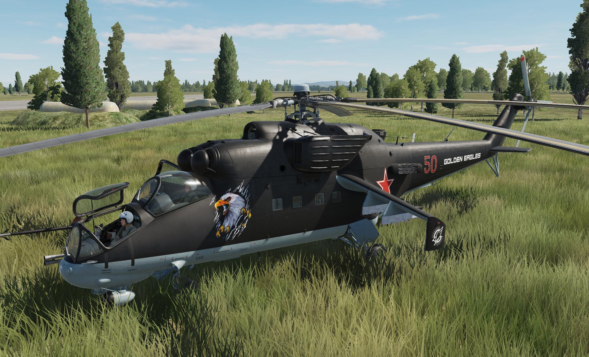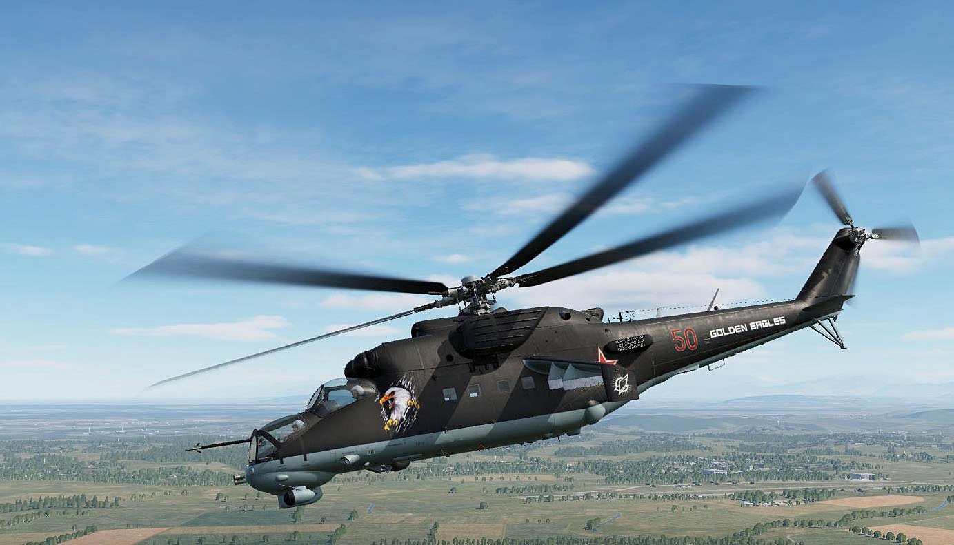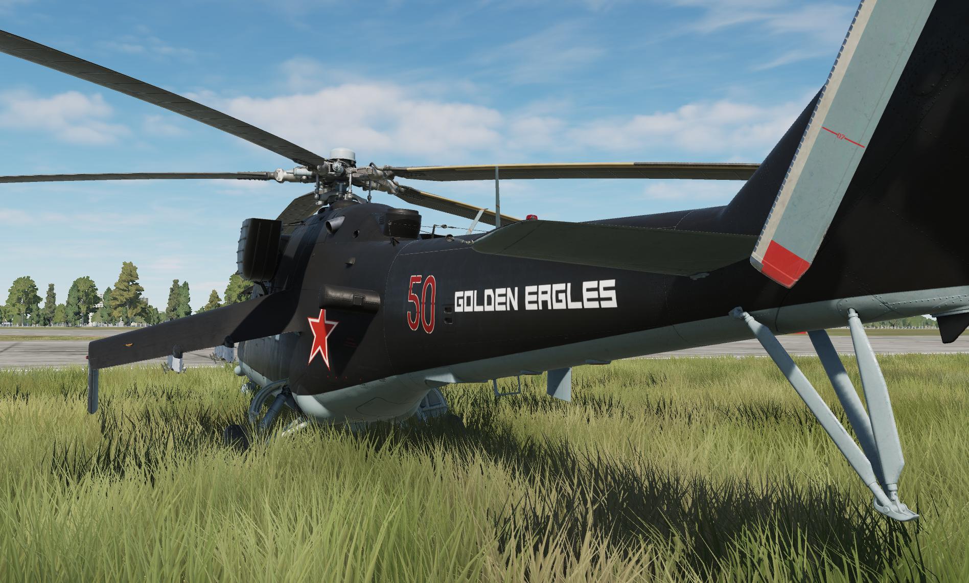 This is a fictional skin for the DCS Golden Eagles Hind Aerobatics Team.