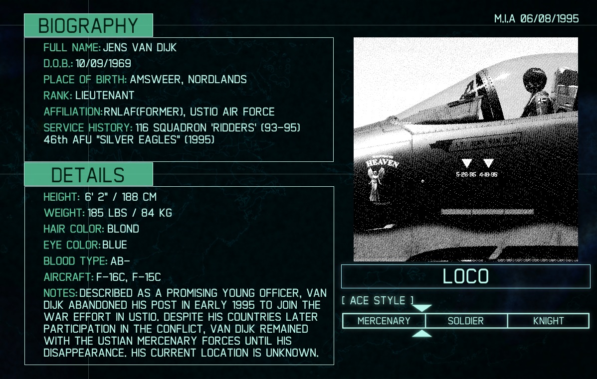 Formed at the height of the Continental War in 2003, the squadron was initially tasked with defending Erusea’s central desert regions from ISAF advances. The harsh conditions and unforgiving environment of the desert honed their skills, earning them the moniker Desert Vipers—lethal and elusive, striking without warning from the scorching sands.The squadron gained fame for daring low-level operations and surprise attacks, using the desert to their advantage. With expertise in both air-to-air combat and ground support, the Desert Vipers are feared for their lethal and unpredictable tactics.
