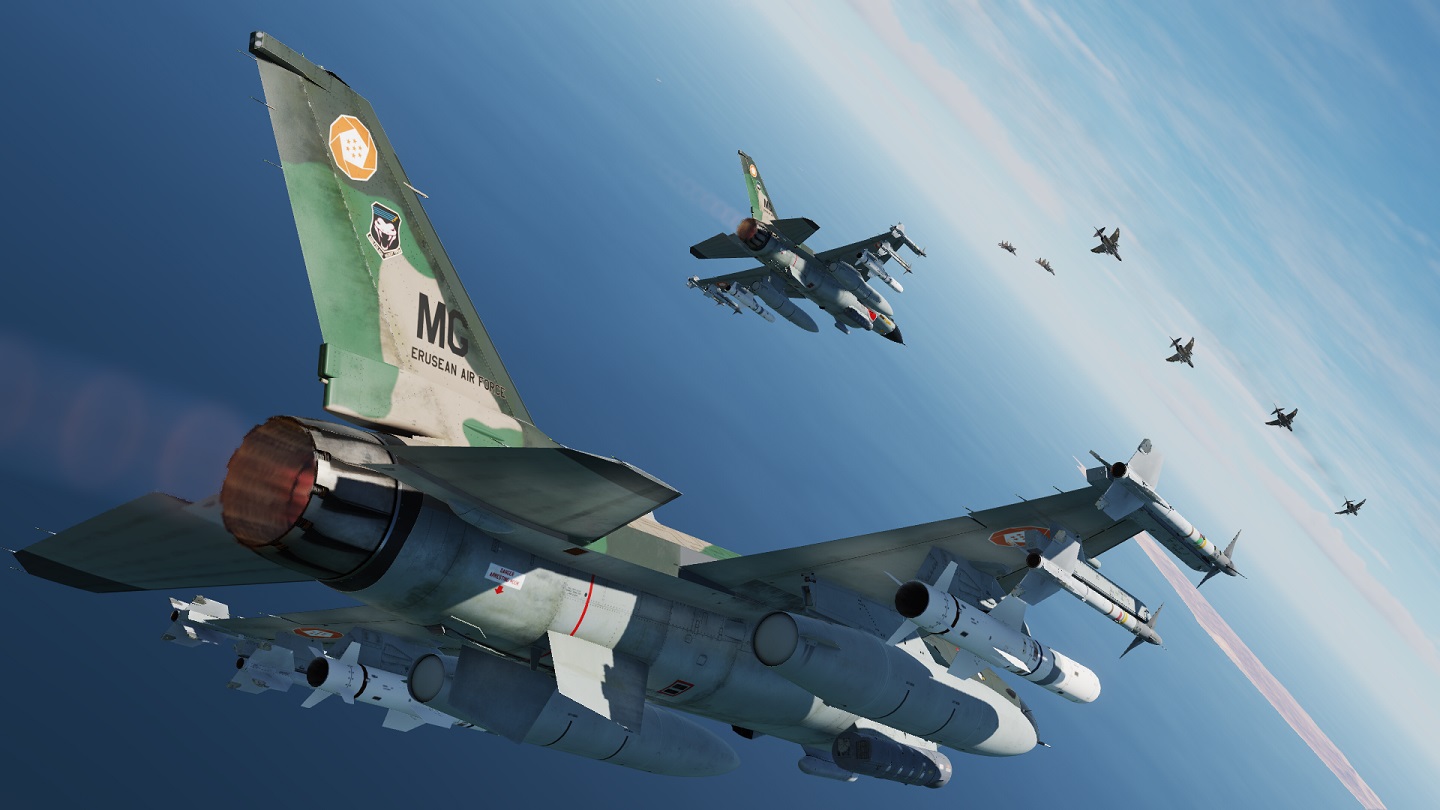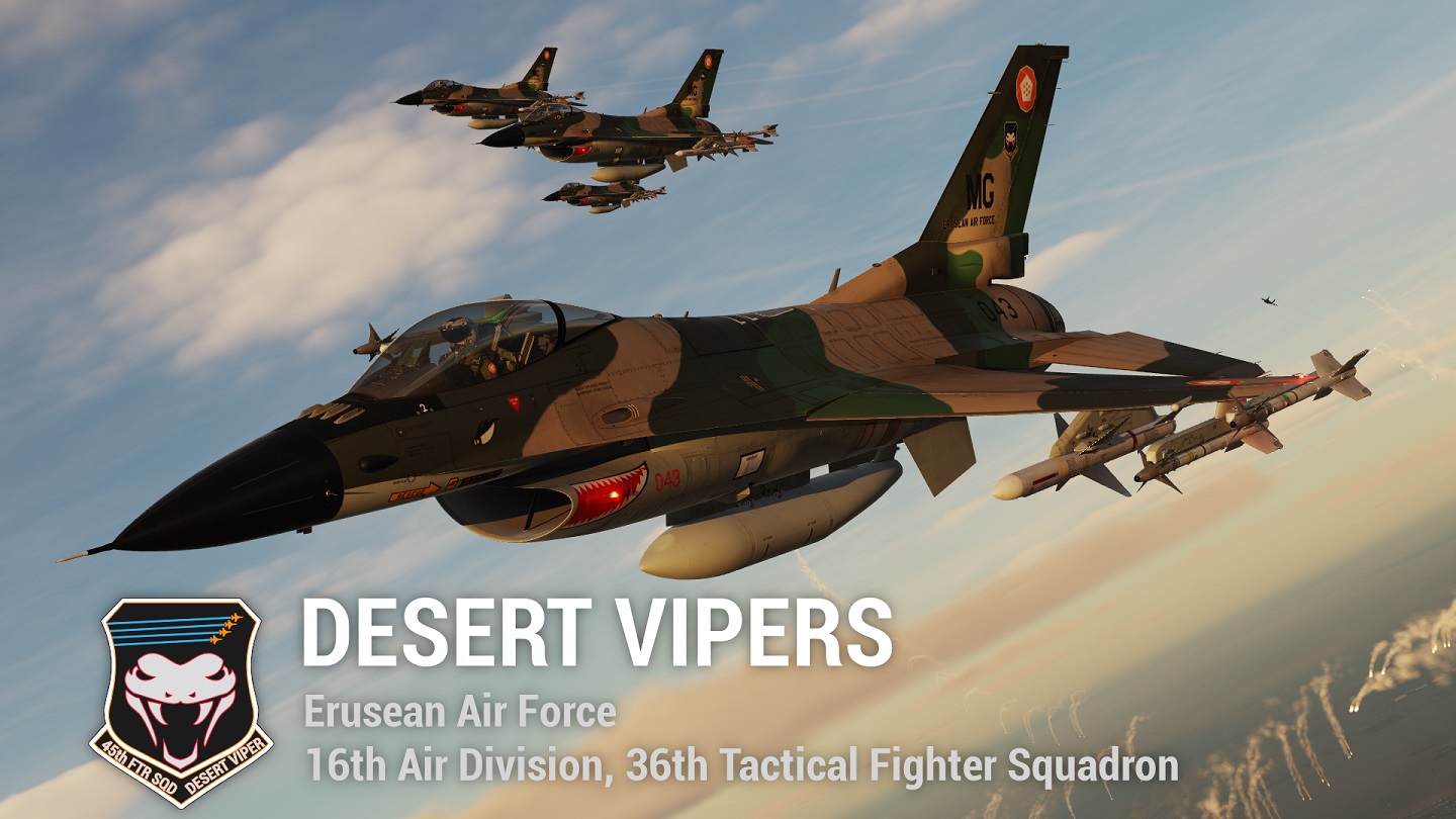 At a base nestled deep within Erusea’s arid and treacherous desert terrain lies the 45th Fighter Squadron ‘Desert Vipers’. Flying the venerable F-2A, the 45th FS is renowned for its mastery of desert warfare, low-altitude dogfighting and precision strike operations.