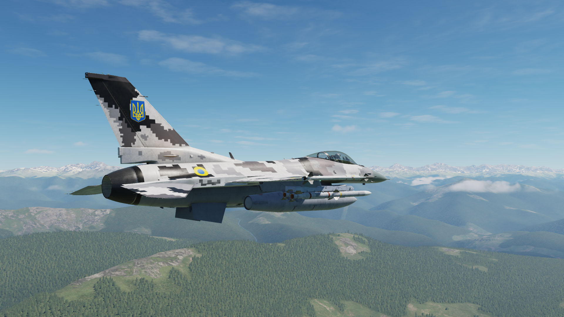 Fictional Ukrainian pixel livery for F-16C. Based on the pixel camouflage of the 831st brigade, which was painted on Flankers in Ukraine