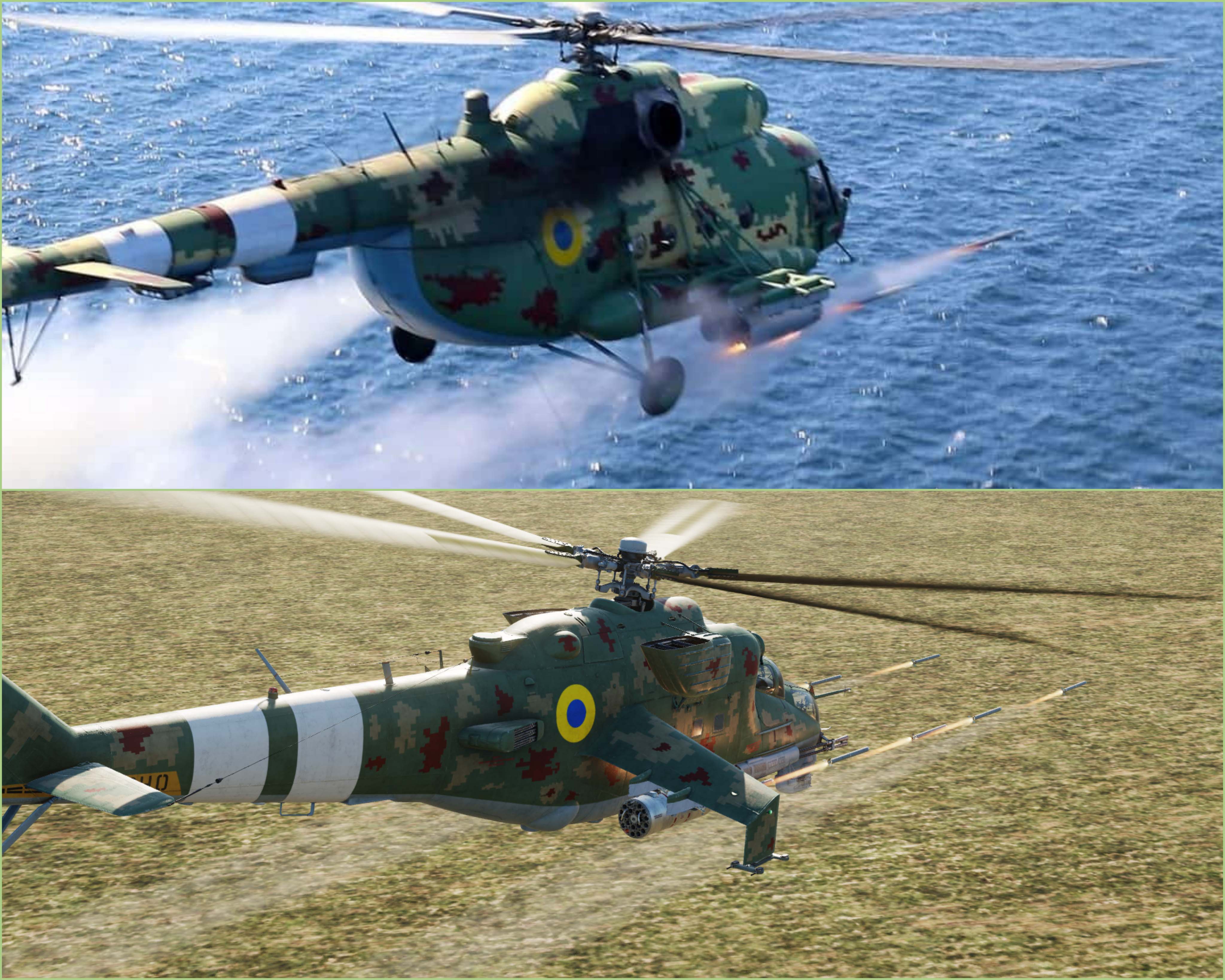 Fictional Ukrainian army green pixel camouflage for Ka-50. Based on Mi-8MSB-V camouflage, which is made in Ukraine.