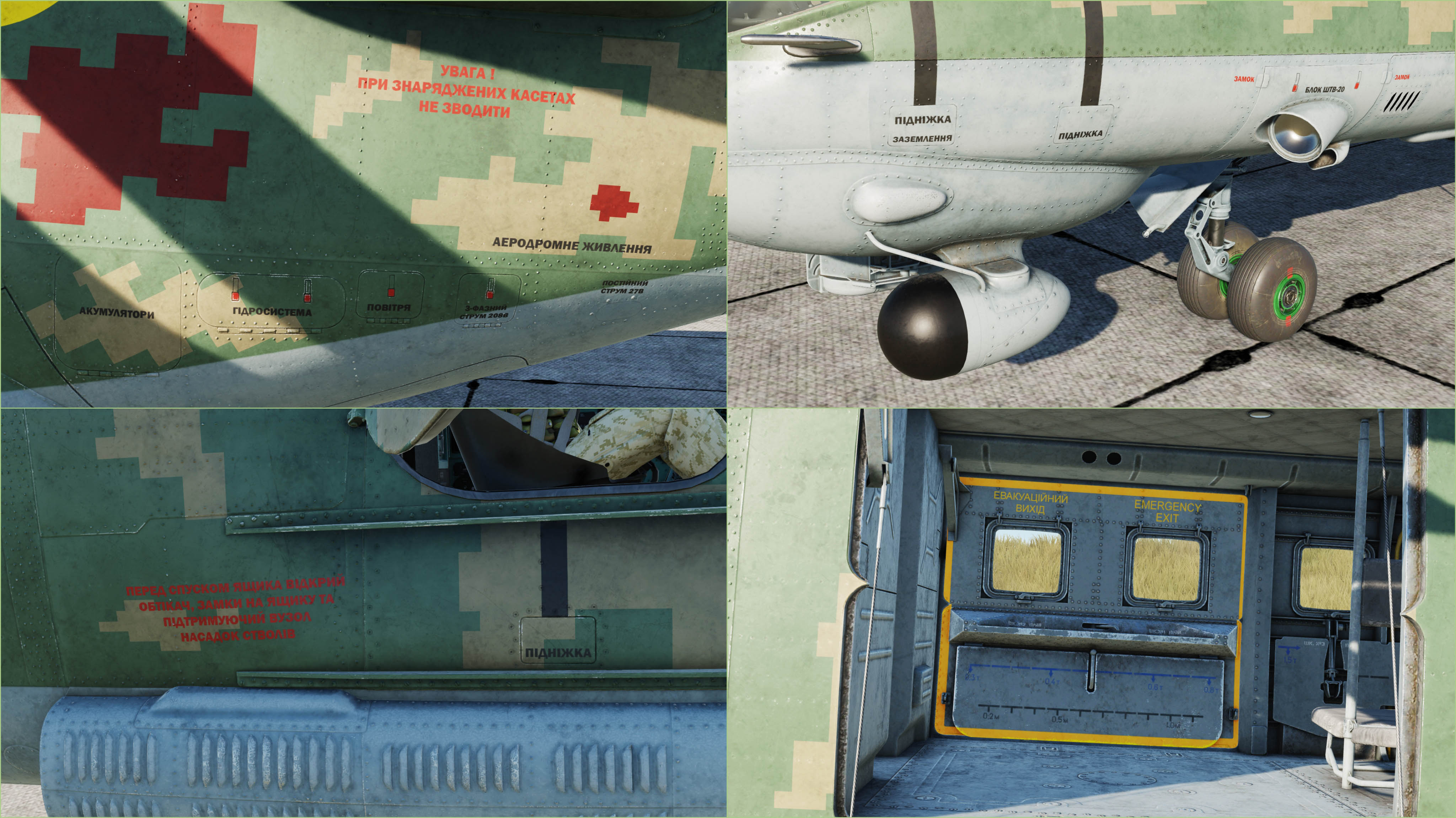 - Ukrainian inscriptions and warnings on the fuselage;